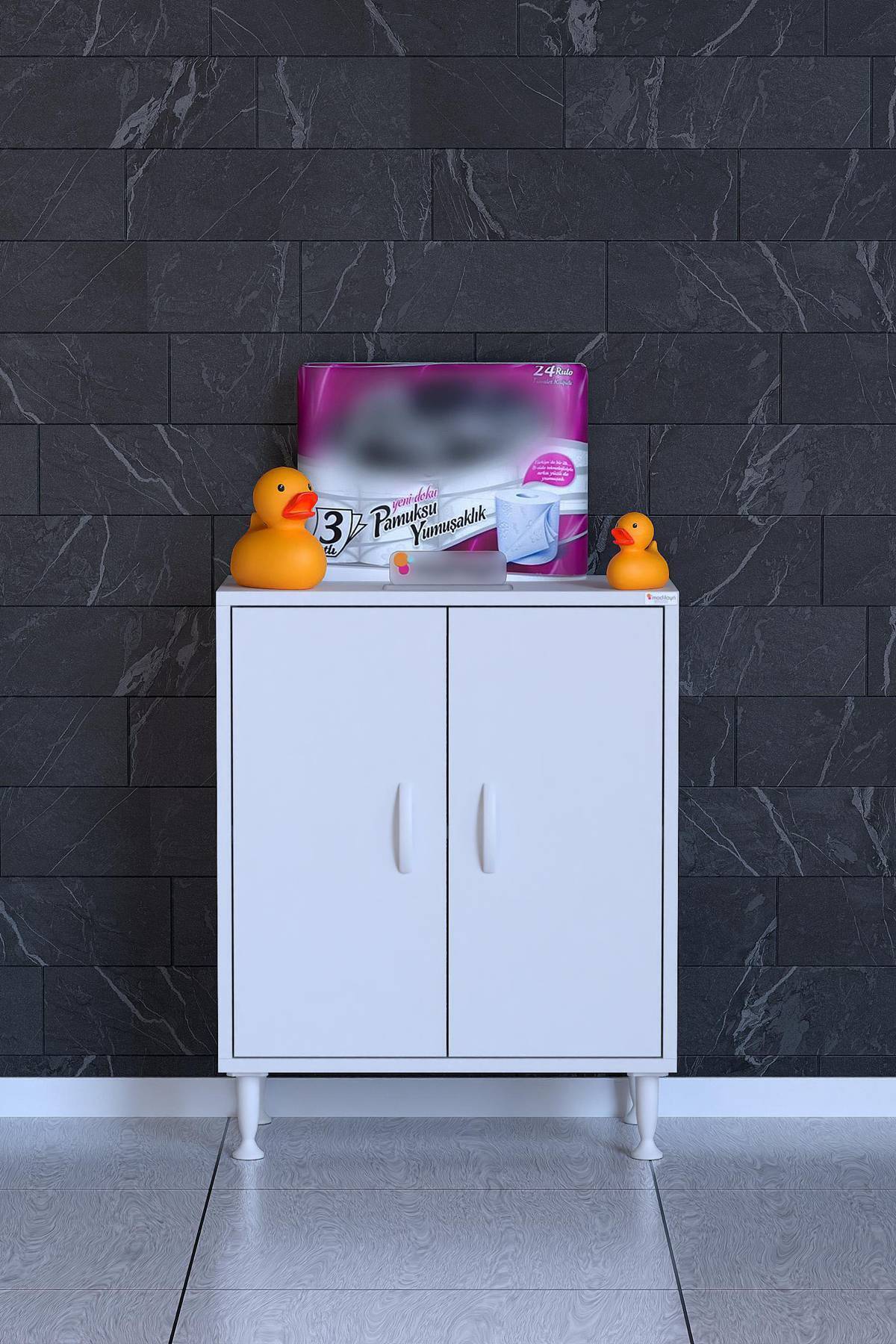 SÖKE Kapaklı 1 Raf, Ayaklı, Çok Amaçlı Banyo Dolabı (14 farklı Genişlik Seçeneği)