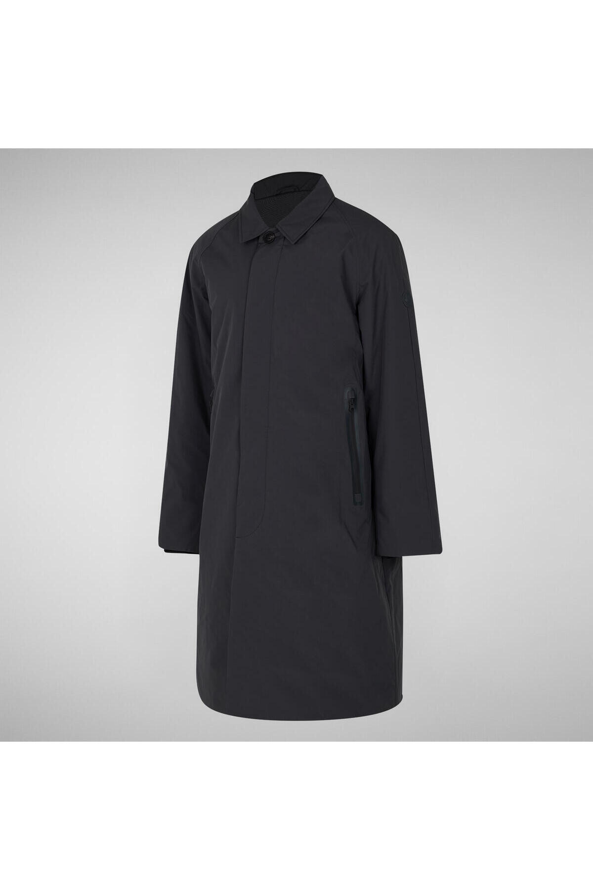 Gizli düğme kapatma ve ton sür ton baskıyla tamamlanmış su geçirmez fermuarlı alçak cepler, çift iç cepli, temiz ve işlevsel bir silüete sahiptir.