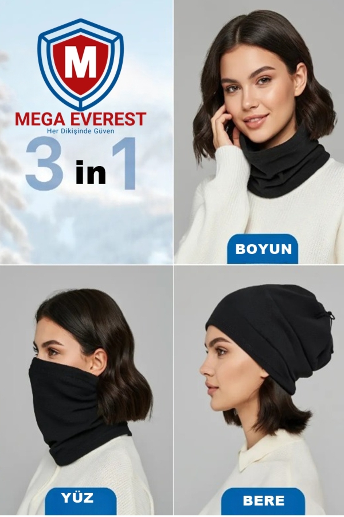 - Üç farklı kullanım imkanı sunan bu bere, hem başınızı hem de boynunuzu sıcak tutar.