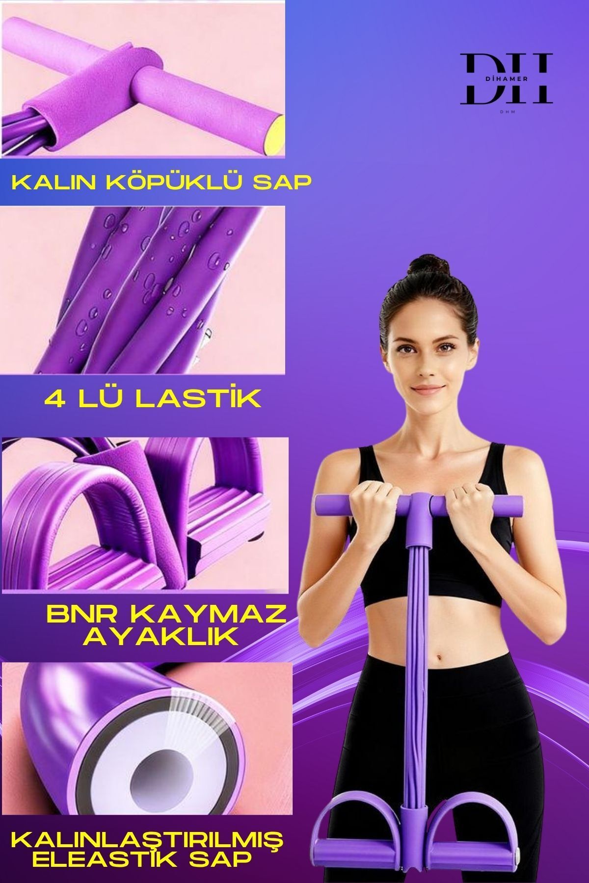 - Evde spor yapmayı kolaylaştıran 4'lü direnç lastiği seti ile kalça sıkılaştırma ve el-ayak egzersizlerini rahatlıkla gerçekleştirebilirsiniz.