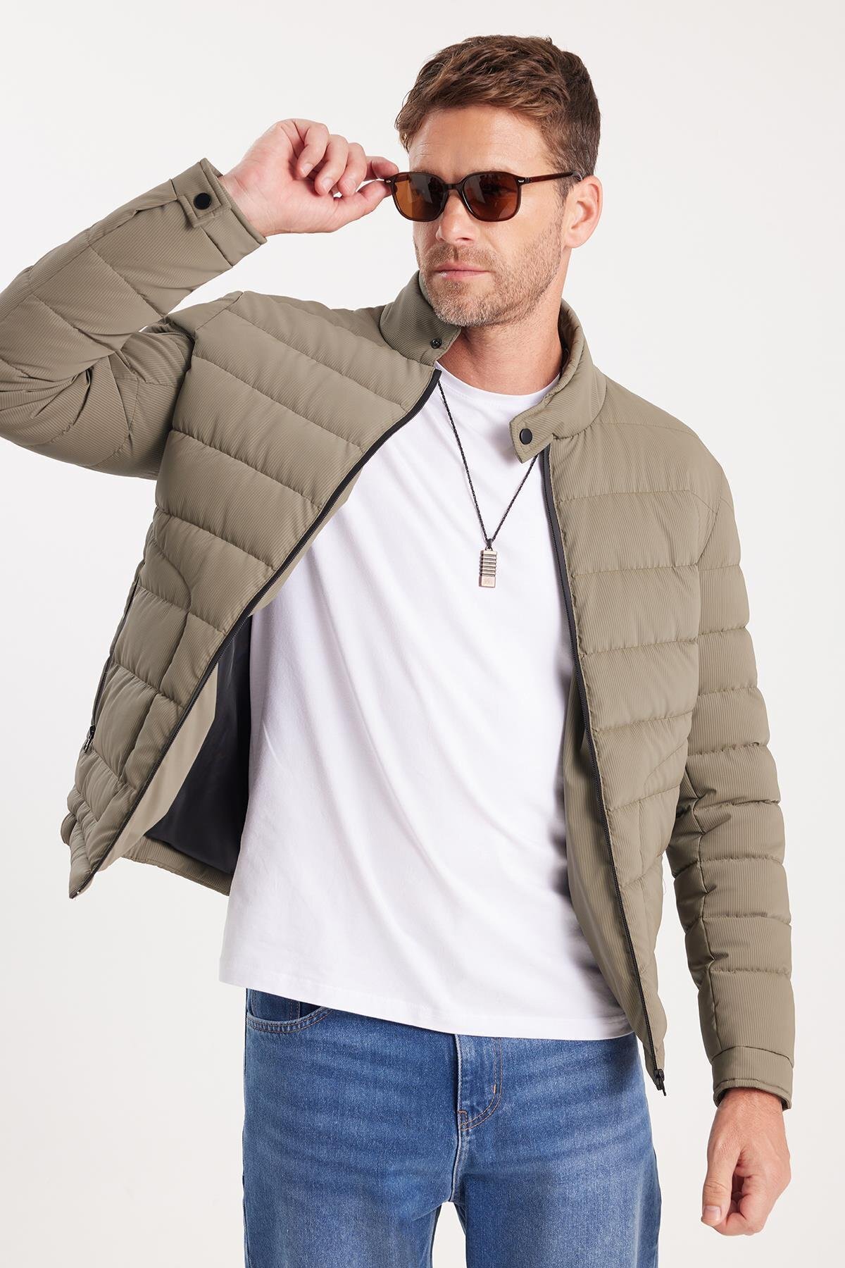 Erkek Regular Fit Klasik Kesim Dik Yaka Çift Cepli Sıcak Tutan Haki Şişme Mont