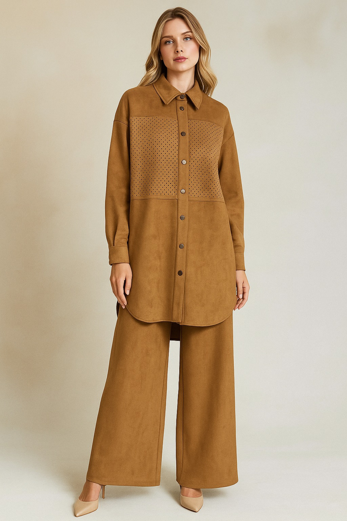 56056 ÖNDEN ÇITÇITLI GÖĞÜSÜ DETAYLI OVERSİZE SÜET PANTOLONLU TAKIM #10-25#
