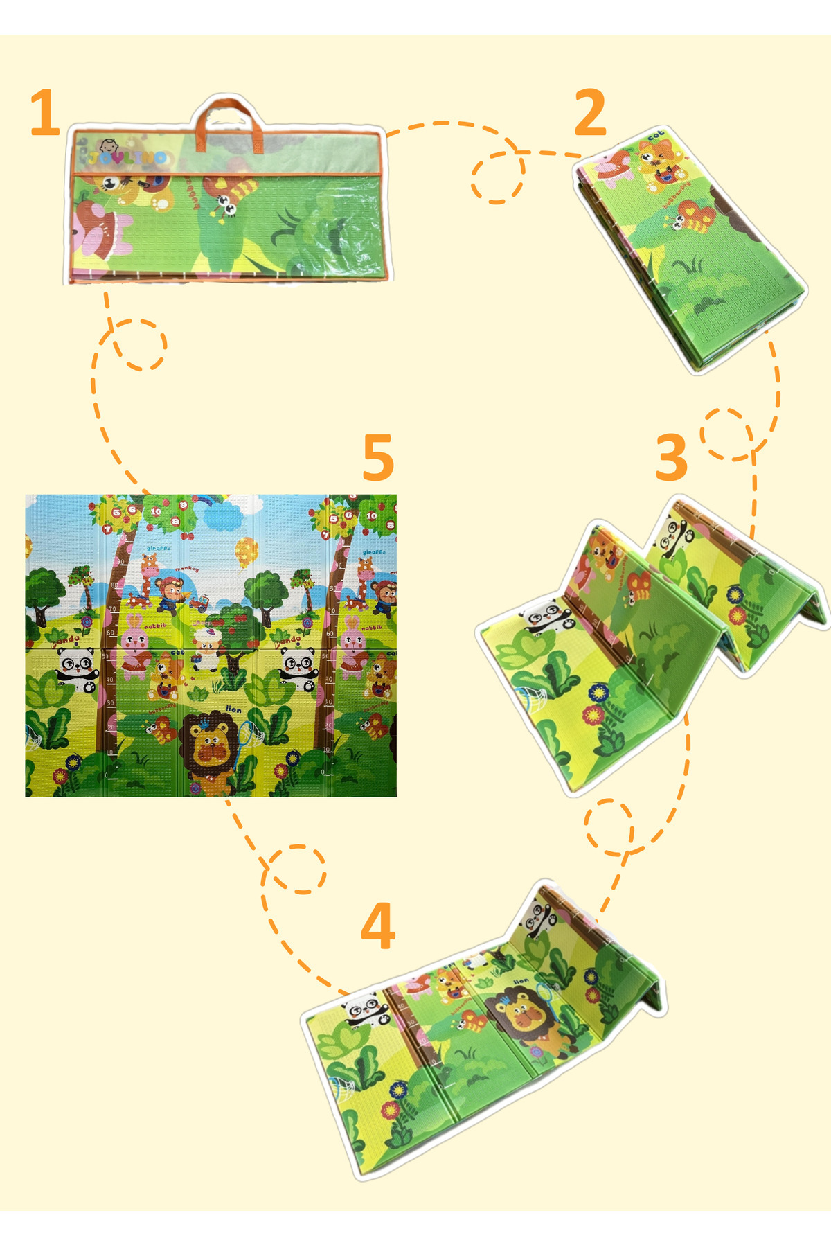 JOYLINO Katlanabilir Çift Taraflı Eğitici Çocuk Oyun Matı, Bebek Oyun Halısı 180x150 (Taşıma Çantalı) Özellikler: Çift Yönlü Kullanım