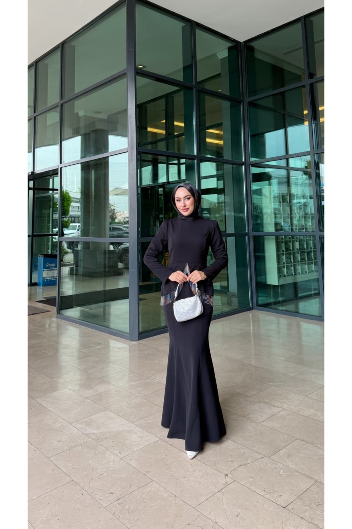 Birinci kalite dabıl krep kumaştan üretilmiştir balık modeldir önü püskül detaylıdır arka orta gizli fermuarlıdır 36/38/40/42/ bedenlerimiz mevcuttur Çekim mankeni 165/50 kg 36 beden giymektedir beden tercih etmektedir