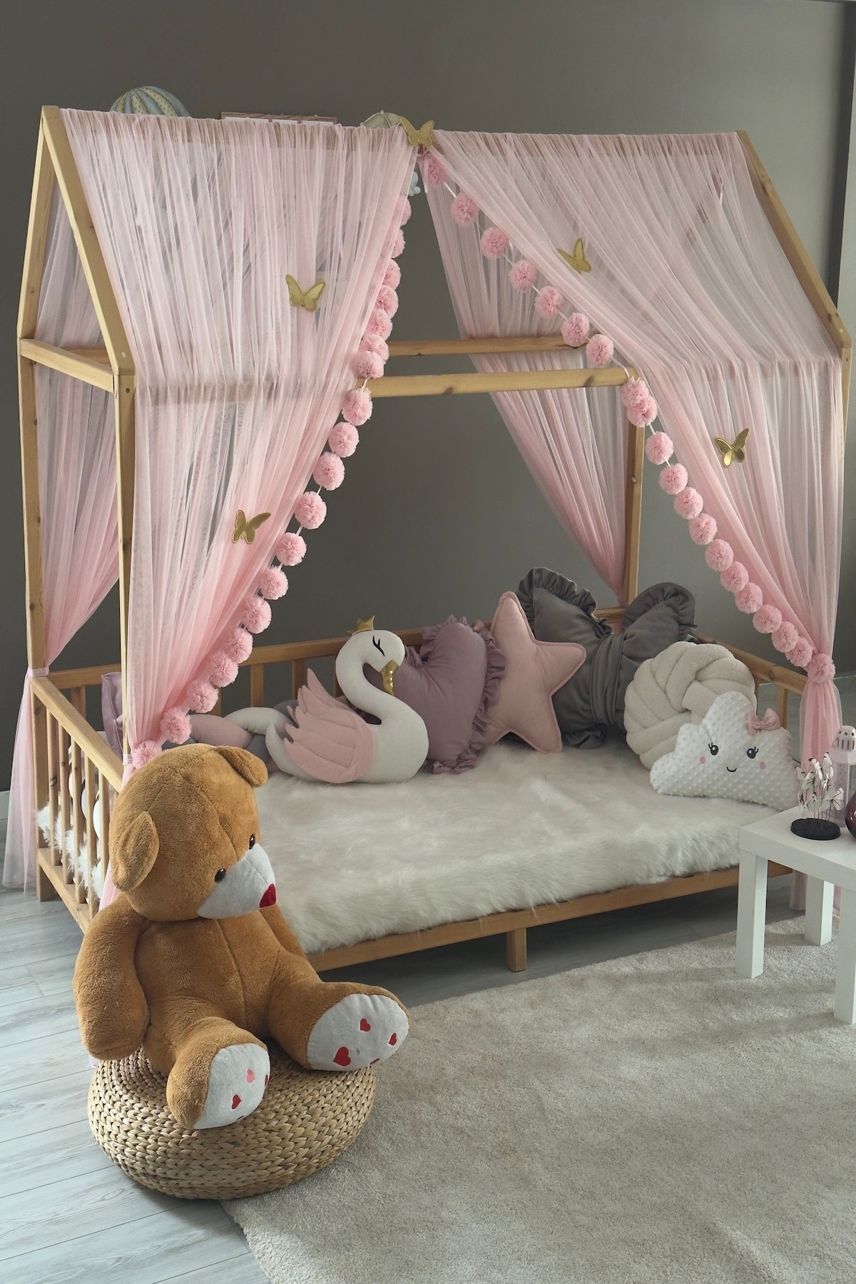 Kişisel, kapalı bir alan yaratan tül kanopiler, çocukların kitapokuyabileceği, dinlenebileceği veya hayal gücüyle oynayabileceği sessiz birsığınak sağlıyor.