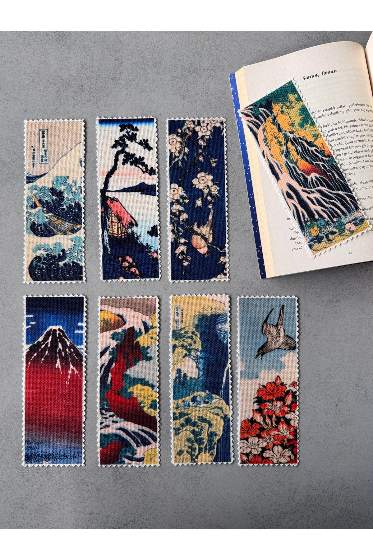 - Katsushika Hokusai'nin ünlü eserlerini içeren bu kanvas kitap ayracı seti, okuma deneyiminizi sanatla buluşturur.