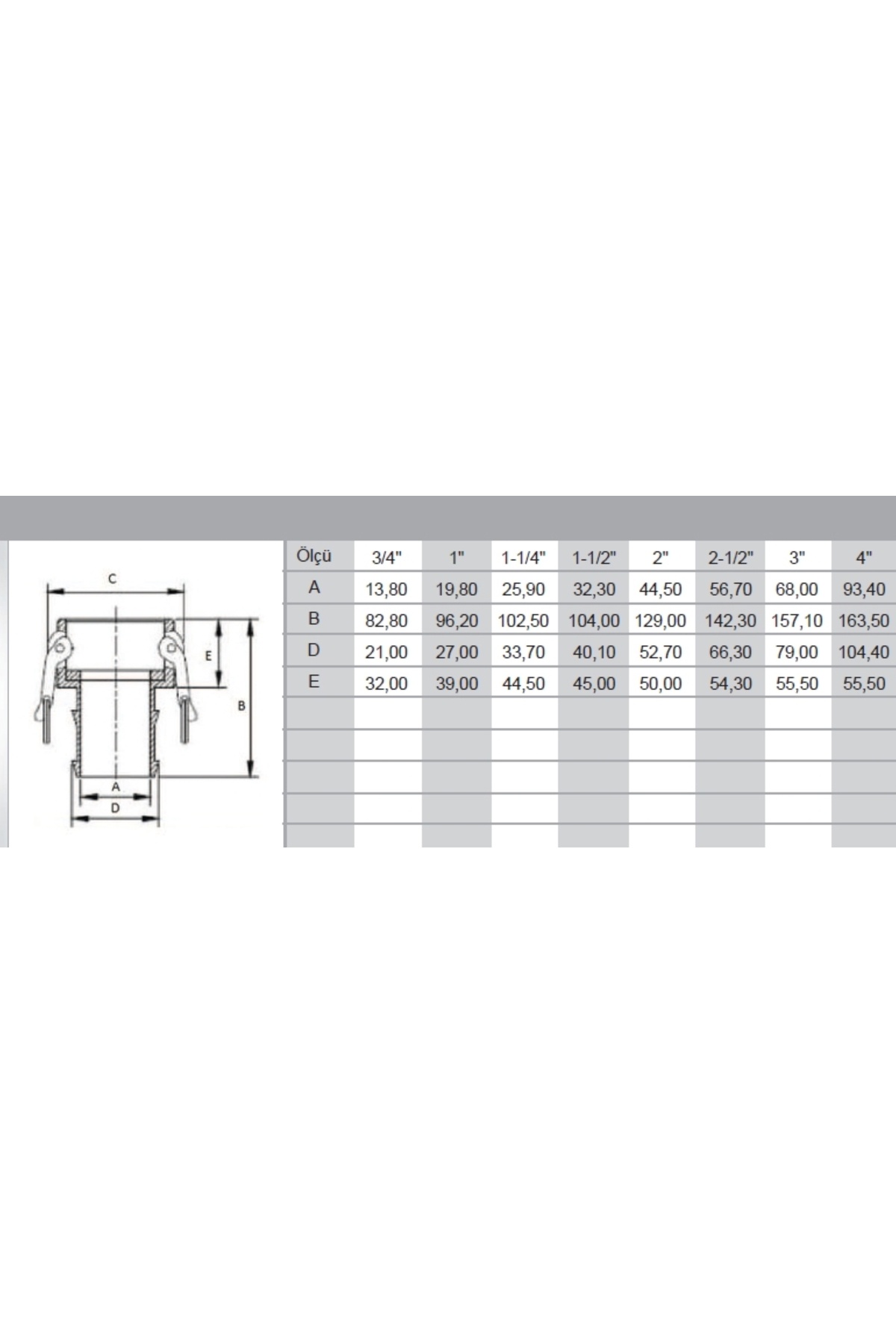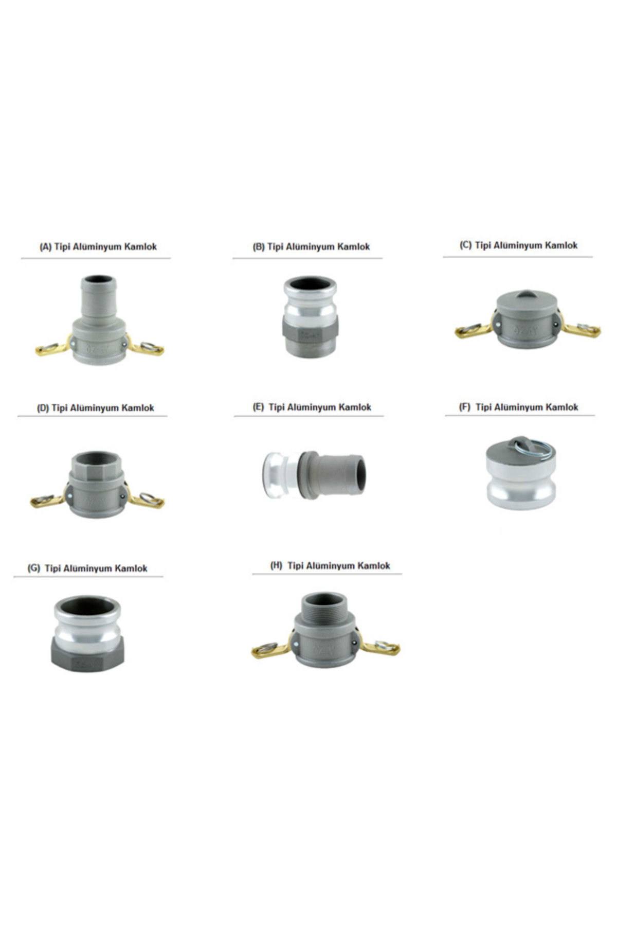 A - B - C - D - E - F - G - H Tipi alüminyum kamlok çeşitleri.