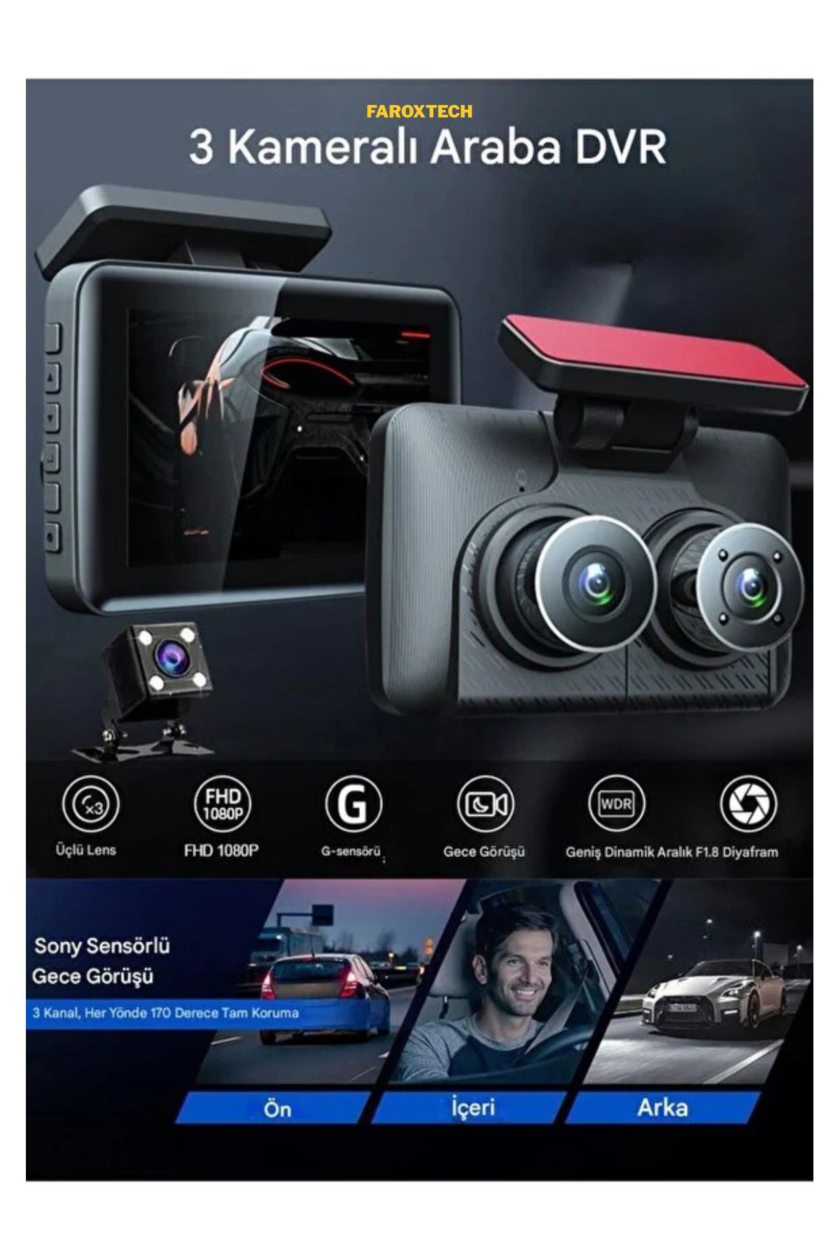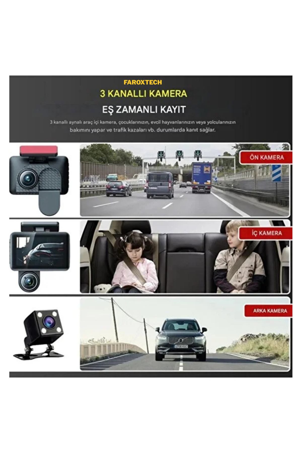 Hafıza Kartı Hediyeli Araç Kamerası - Çok Yönlü Çekim Açısı - Arka İç Ön Kamera - Telefondan İzleme