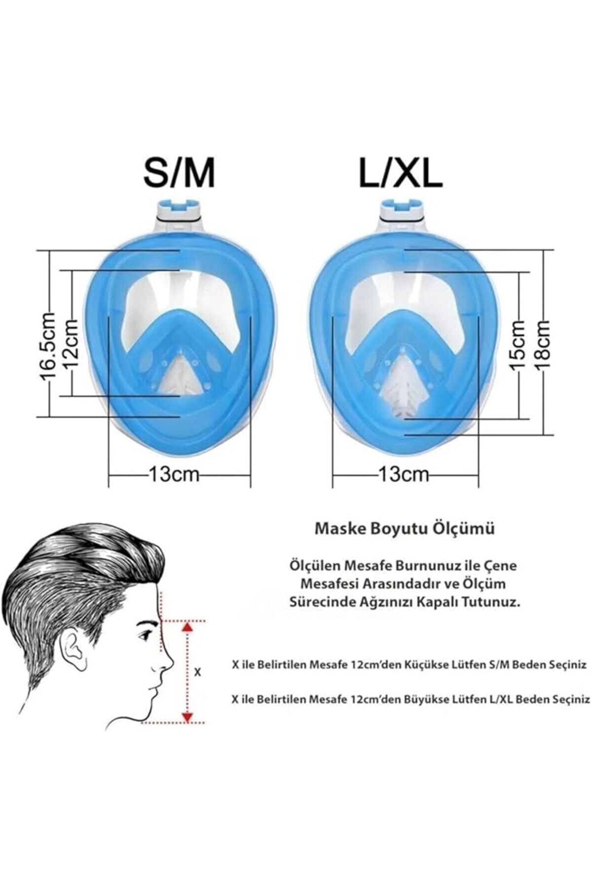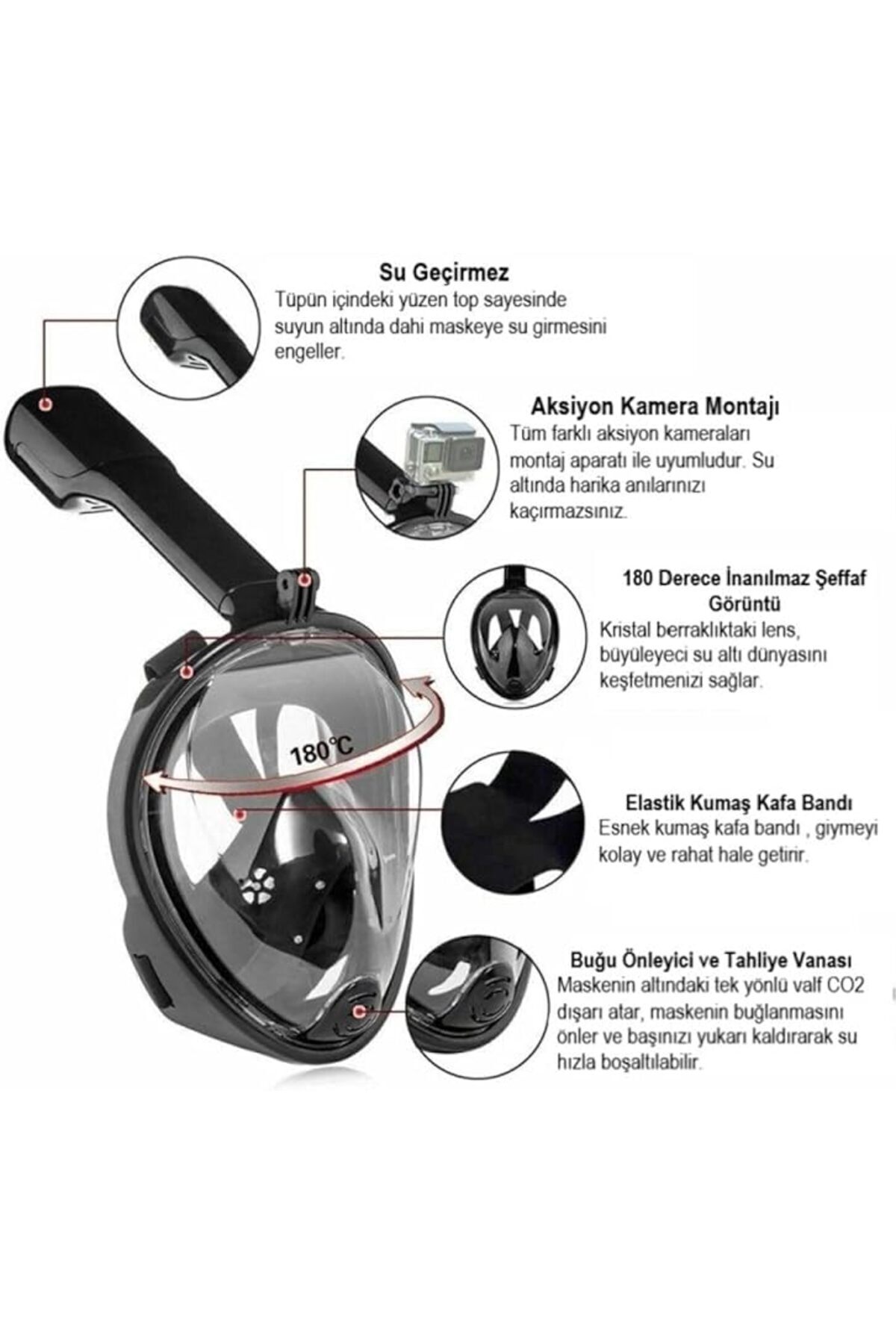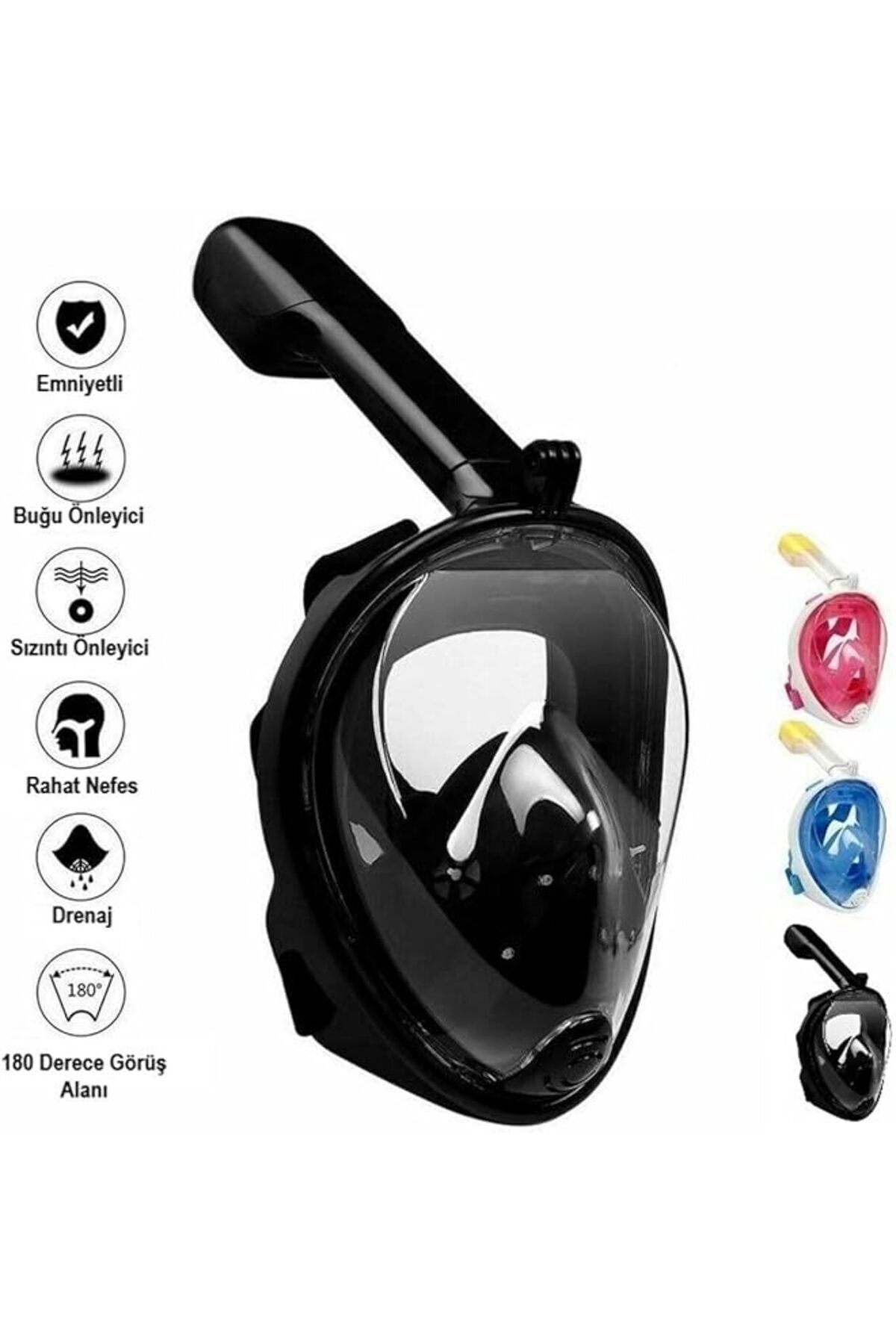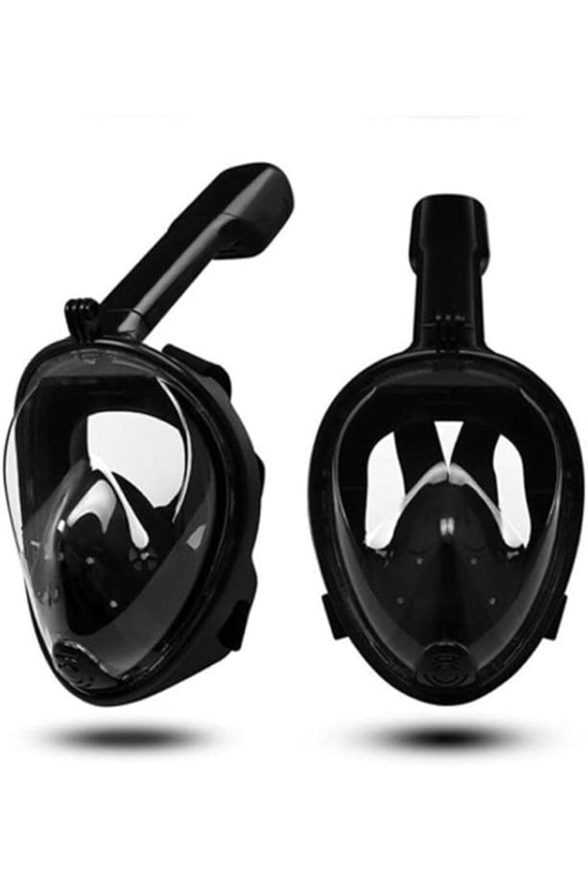Yüz Dalış Maskesi Buğu Önleyici Şnorkel Fullface Yüzücü Maskesi Siyah