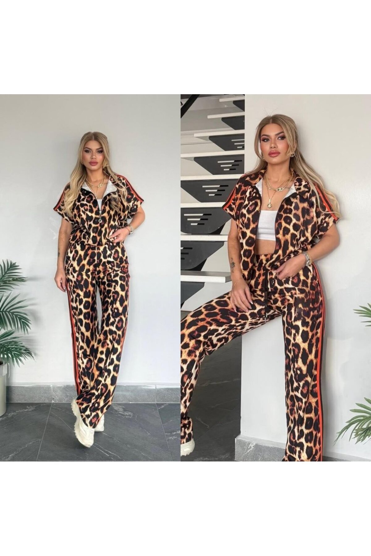 Kadın Dalgıç Kumaş Dijital Leopar Baskılı şerit Detaylı Takım