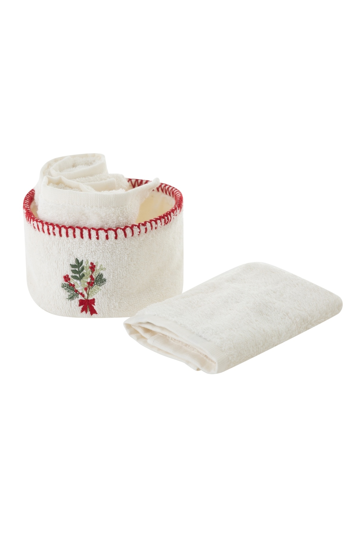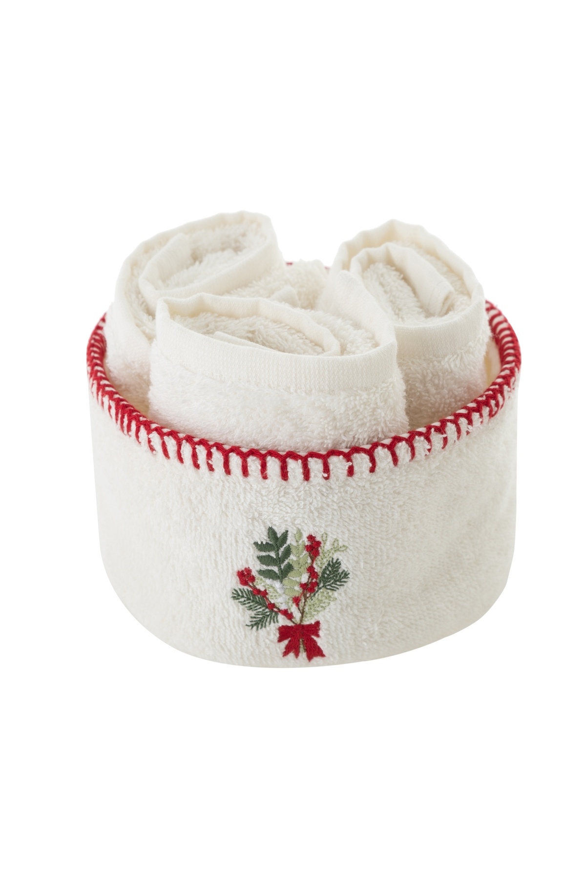 Yılbaşı ruhunu yansıtan nakışlı havlu sepetiyle dikkat çeken Joy 3+lü el havlusu seti, banyonuza neşe katacak.