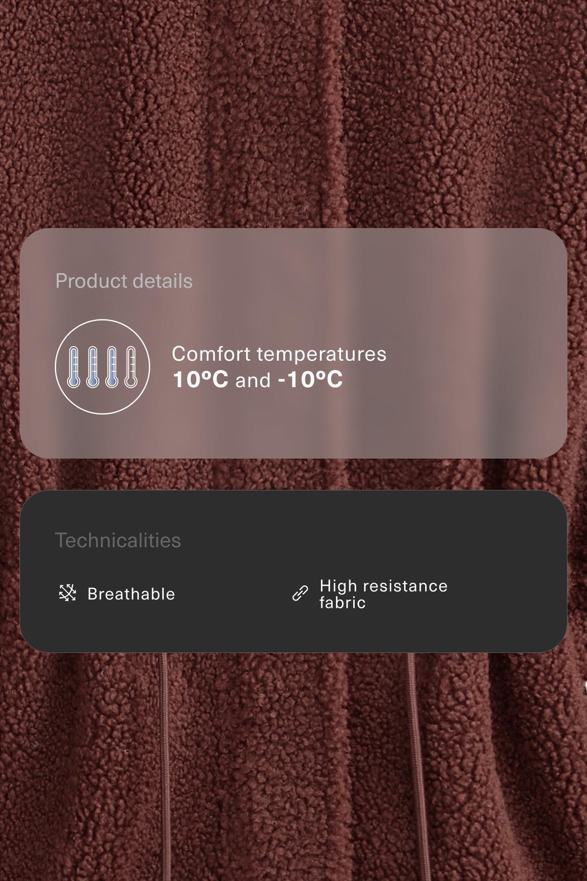 Nefes alabilir ve içi polar, yüksek dayanıklılığa sahip suni yün ceket.