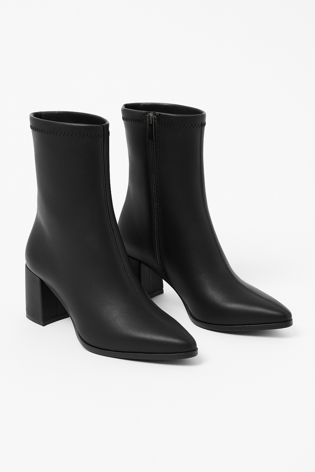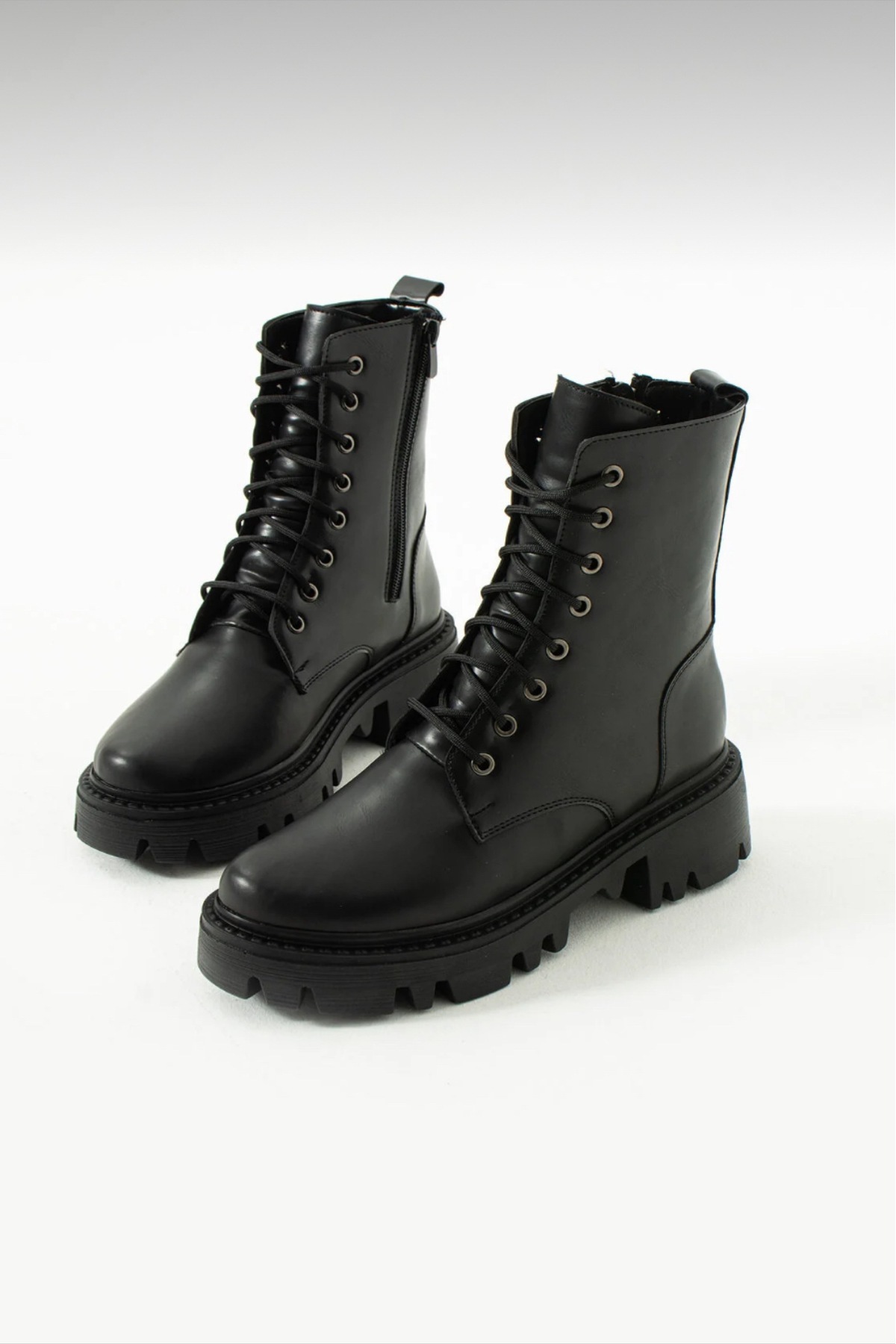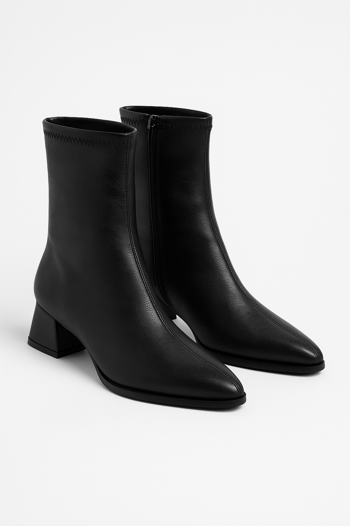 - Günlük kullanım için ideal, rahat ve şık tasarımıyla dikkat çeken kadın siyah deri topuklu bot.