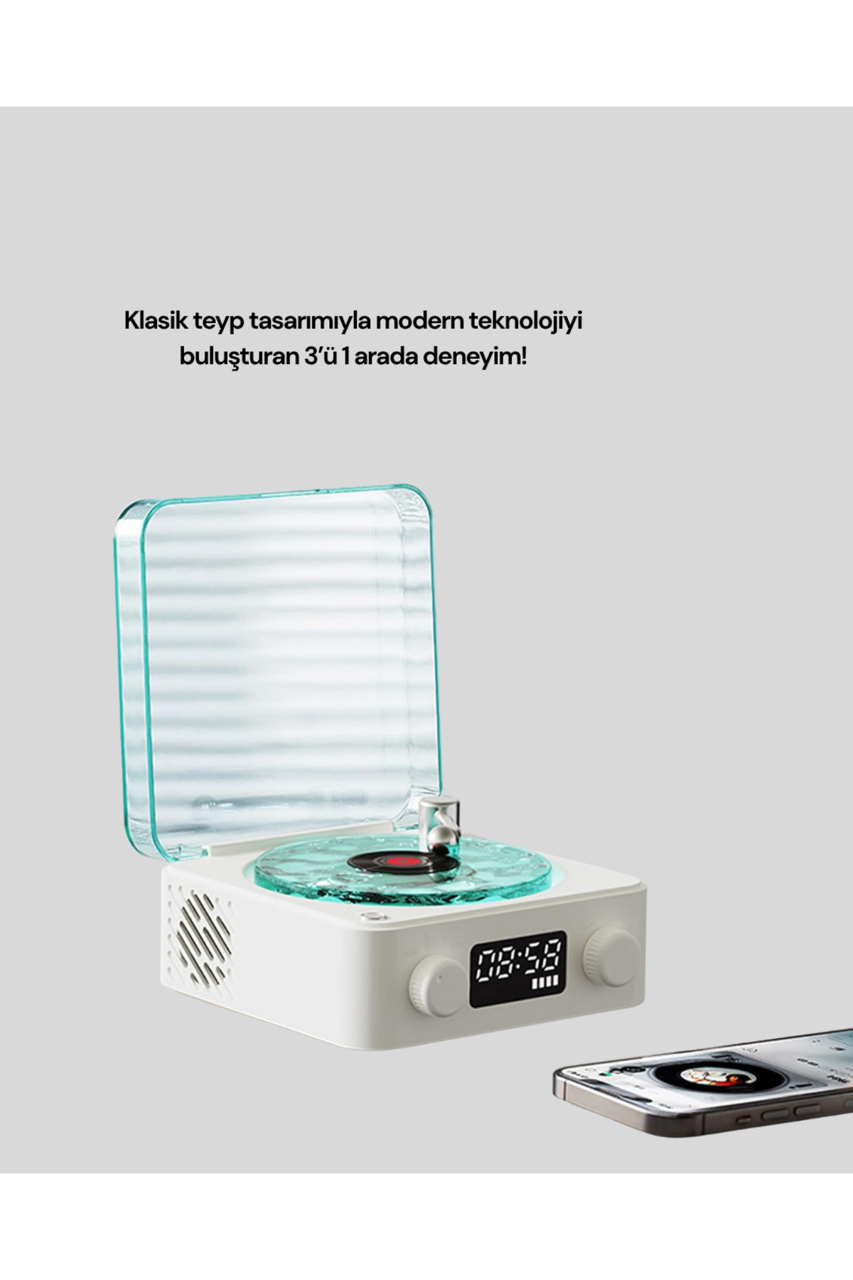Vintage plak çalar tarzındaki zarif formu, hem işlevsel hem de görsel olarak fark yaratır.