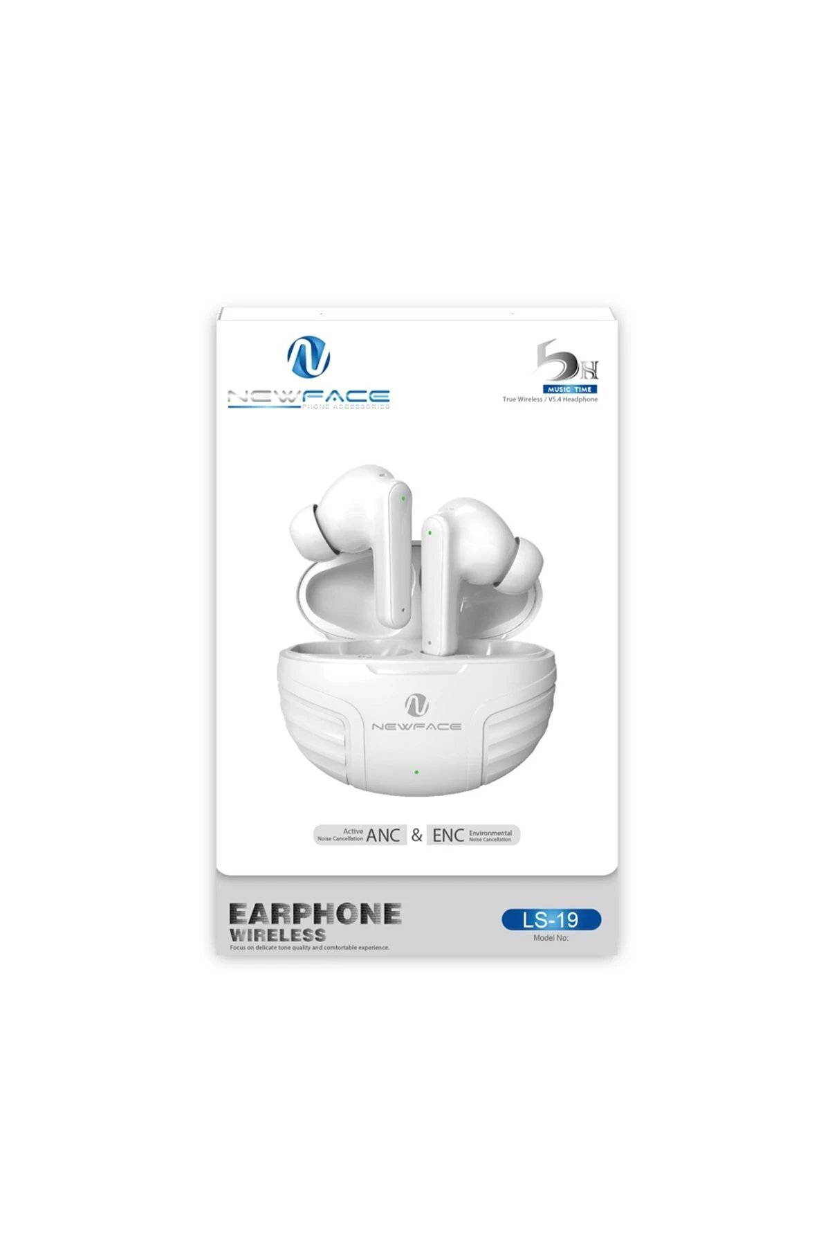 LS-19 Aktif Gürültü Engelleyici Özellikli Bluetooth 5.4 Kablosuz Airpods Kulaklık - Krem-(5796)