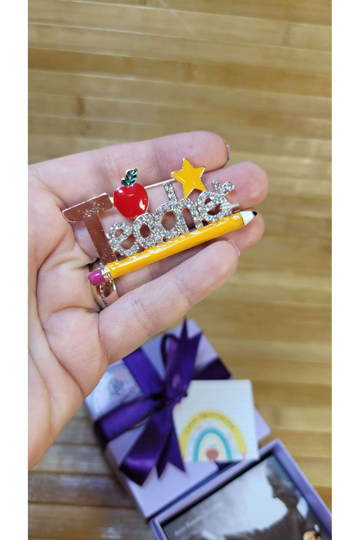 Teacher kurşun kalem ingilizce öğretmen broş - öğretmenler günü hediyesiAltın kaplama - mineli - kristal taşlı teacher öğretmen broşÖzel lak kaplamalı kararmaz (parfüm ve kimyasaldan sakının)Ceket yakasında , şapkaya , şal , kaşkol , çanta her türlü tekstil ürününe takabilir harika bir öğretmen hediyesi verebilirsiniz.