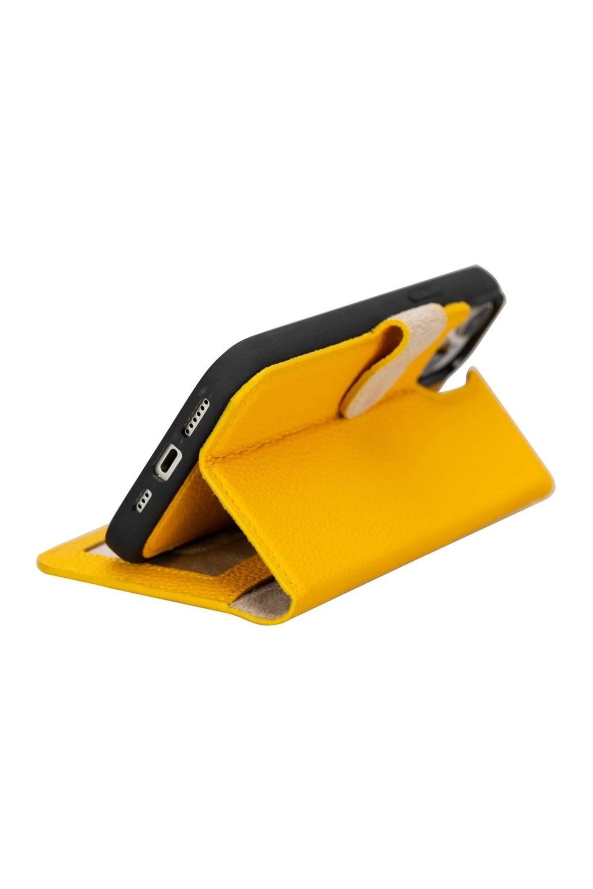 Apple iPhone 15 Plus Uyumlu Deri Cüzdanlı Kılıf MWWN FL12 Sarı
