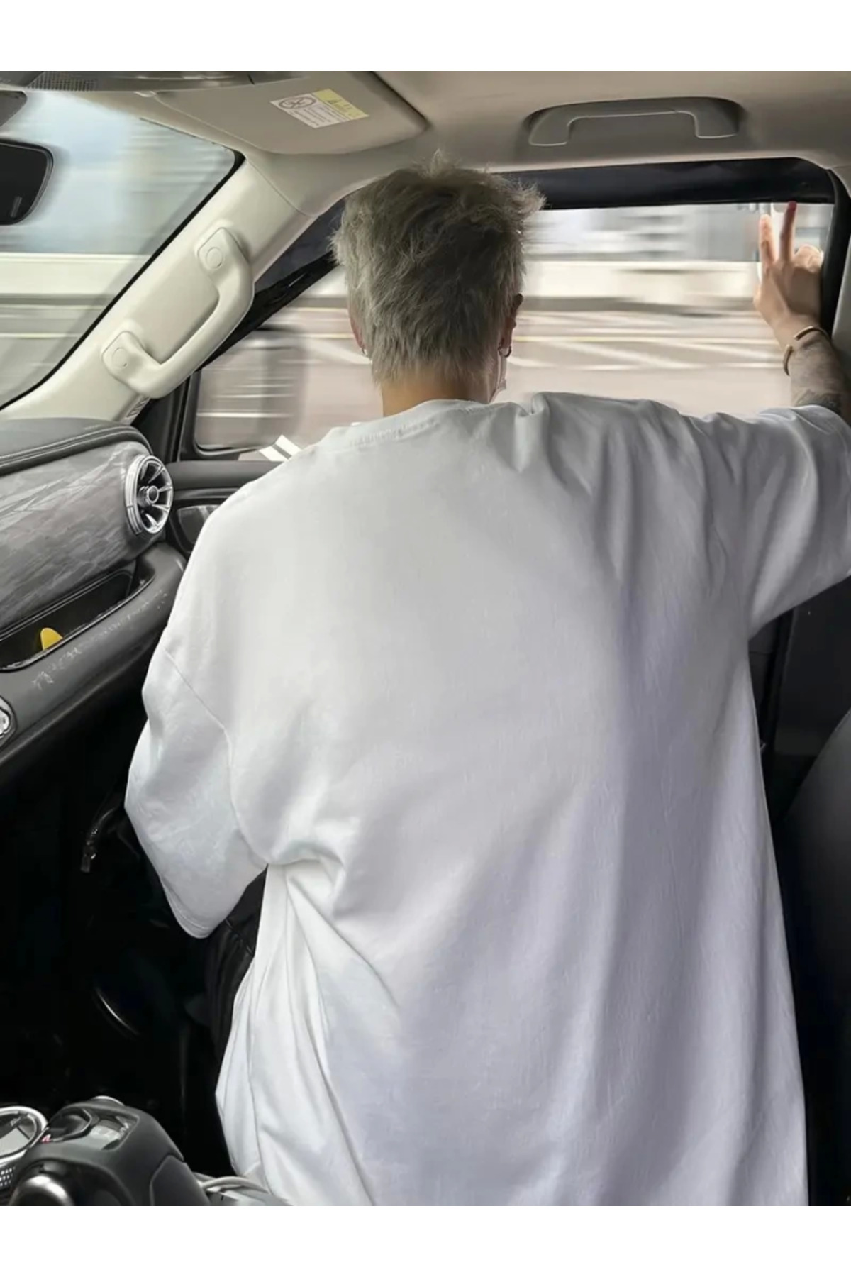Baskılı Oversize Bisiklet Yaka T-shirt - Beyaz