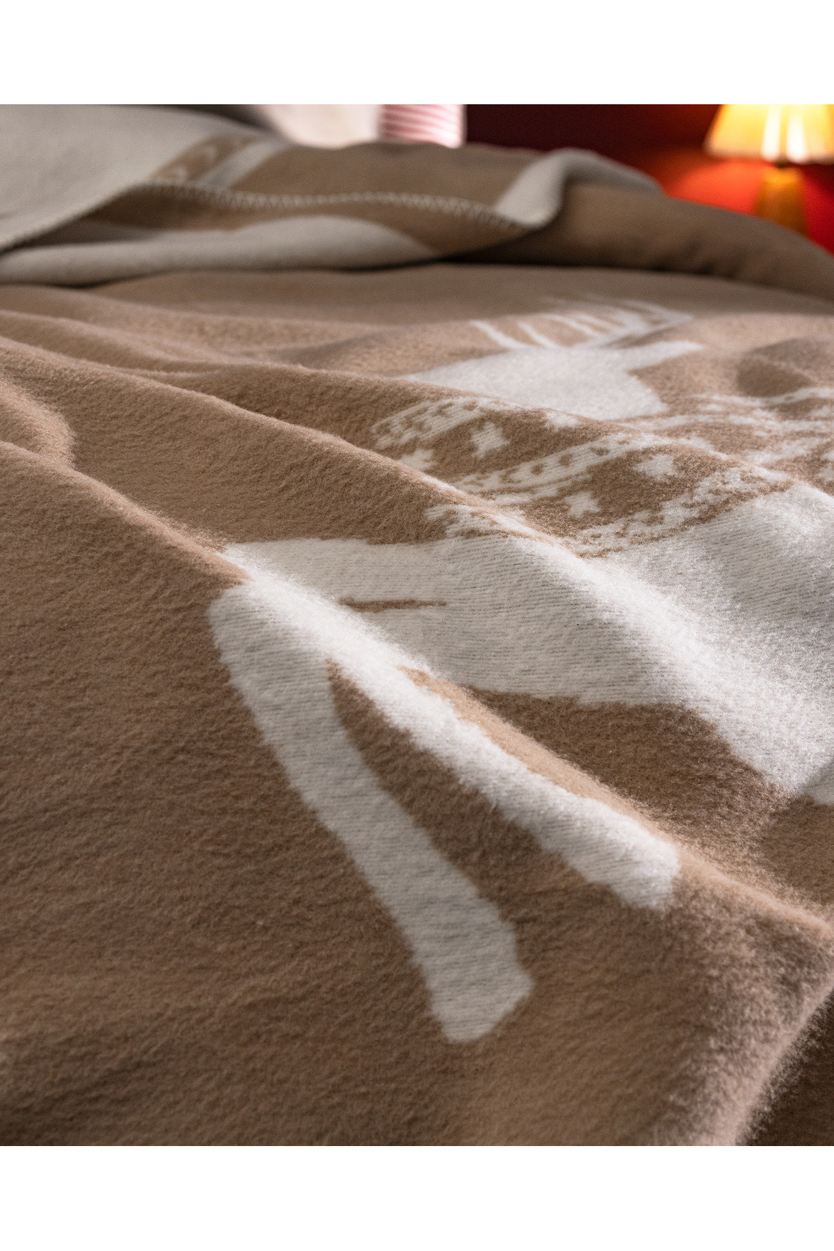 Mozal Çift Kişilik Jakarlı Pamuklu Battaniye - Bej/Ekru