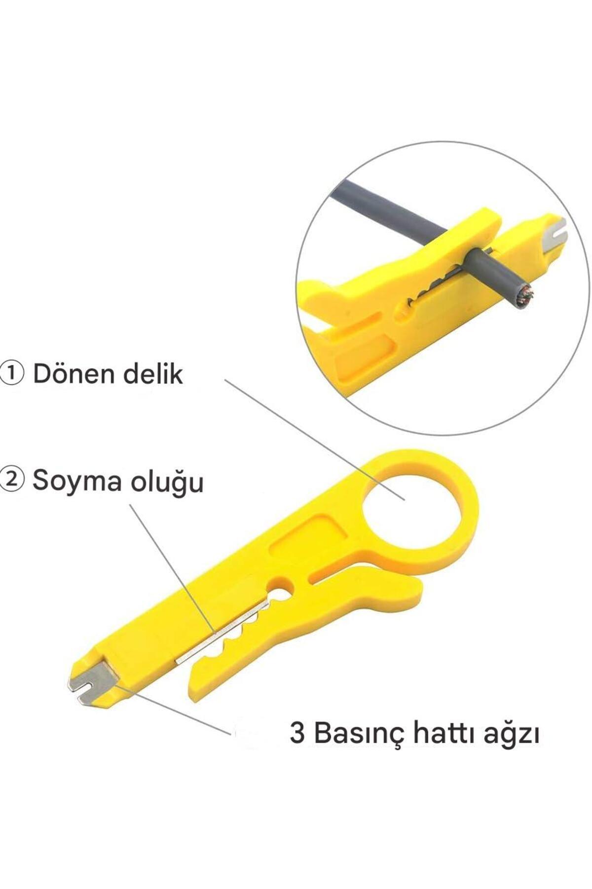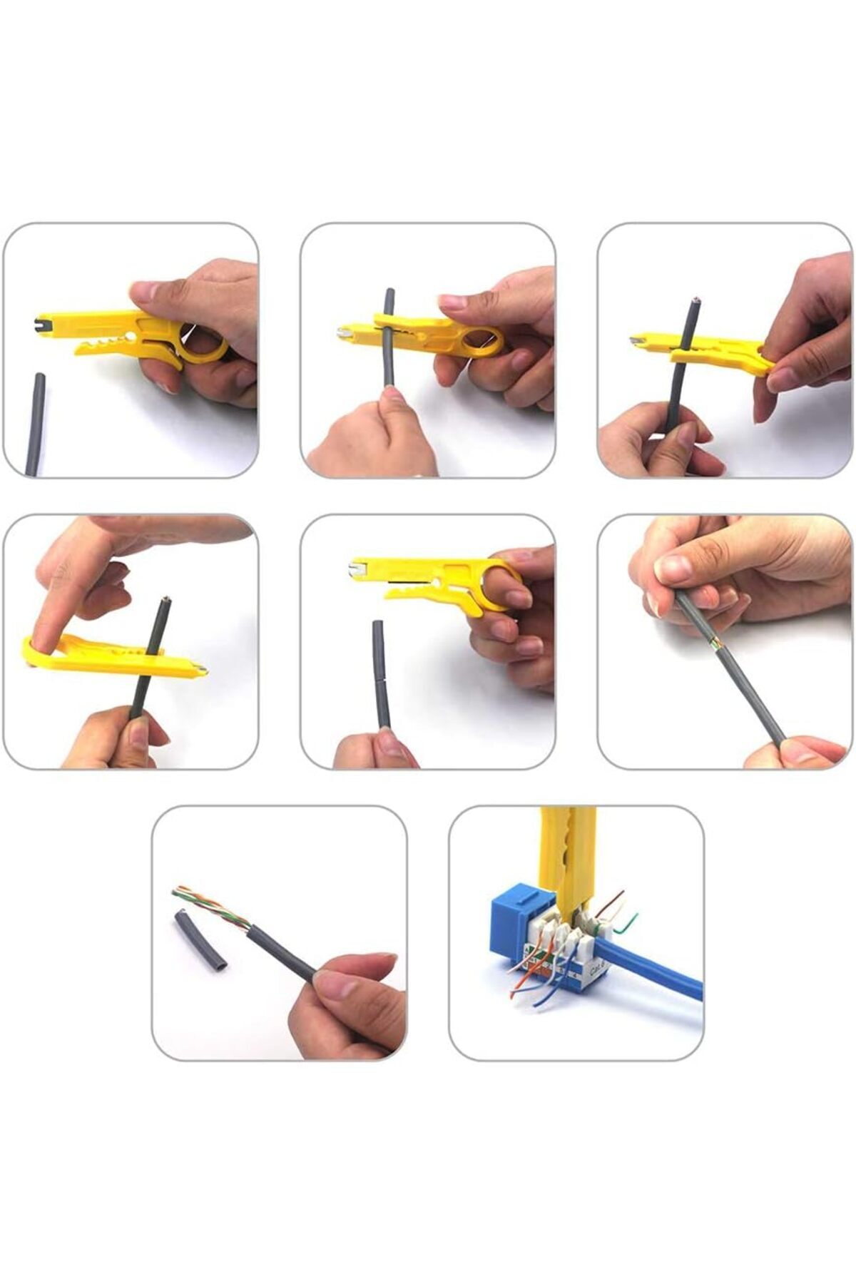 Kırık bir kabloyu veya ev ağı kurulumunu değiştirirken ethernet kilit taşı jaklarını, telefon duvar prizlerini, yama kablolarını bu araçla kolayca sonlandırabilirsiniz.