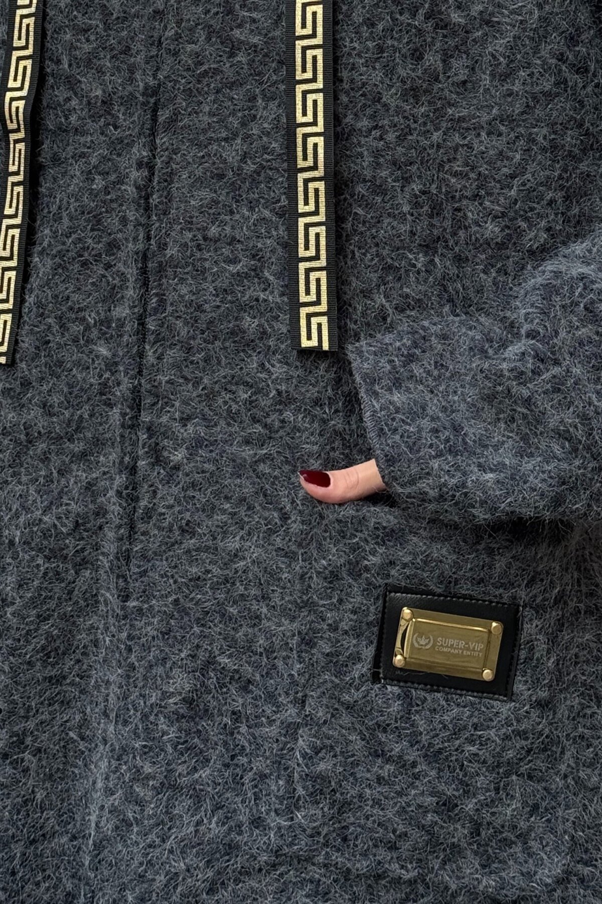 Kapüşonlu Fermuar Kapamalı Çift Cepli Uzun Kaşe Astarlı Mont