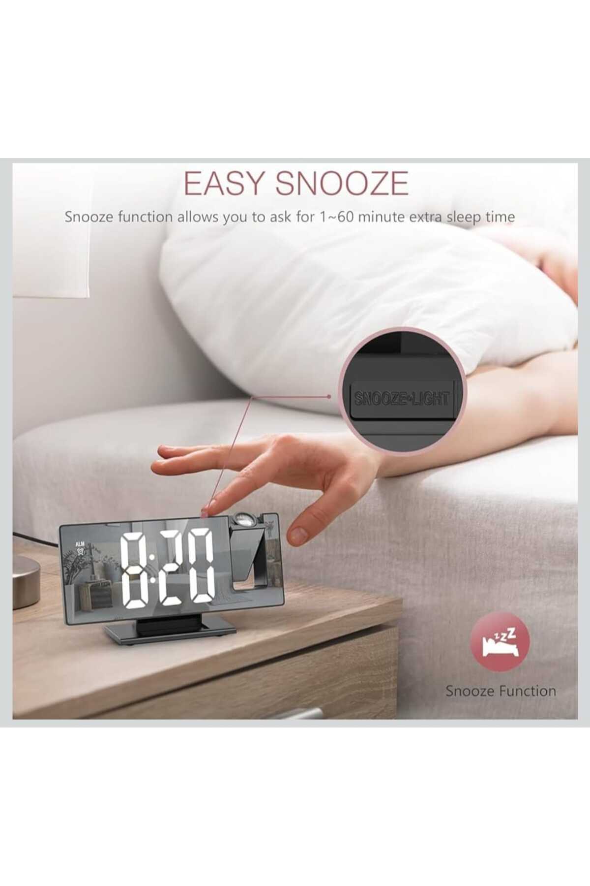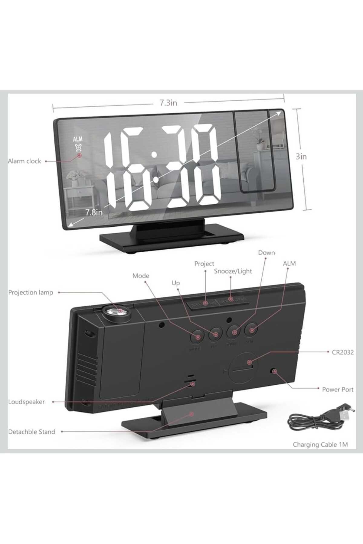 Dijital Çalar Masa Saati, Projektör Ekranlı Erteleme Fonksiyonu Yüksek Ses Ayarlanabilir Parlaklık