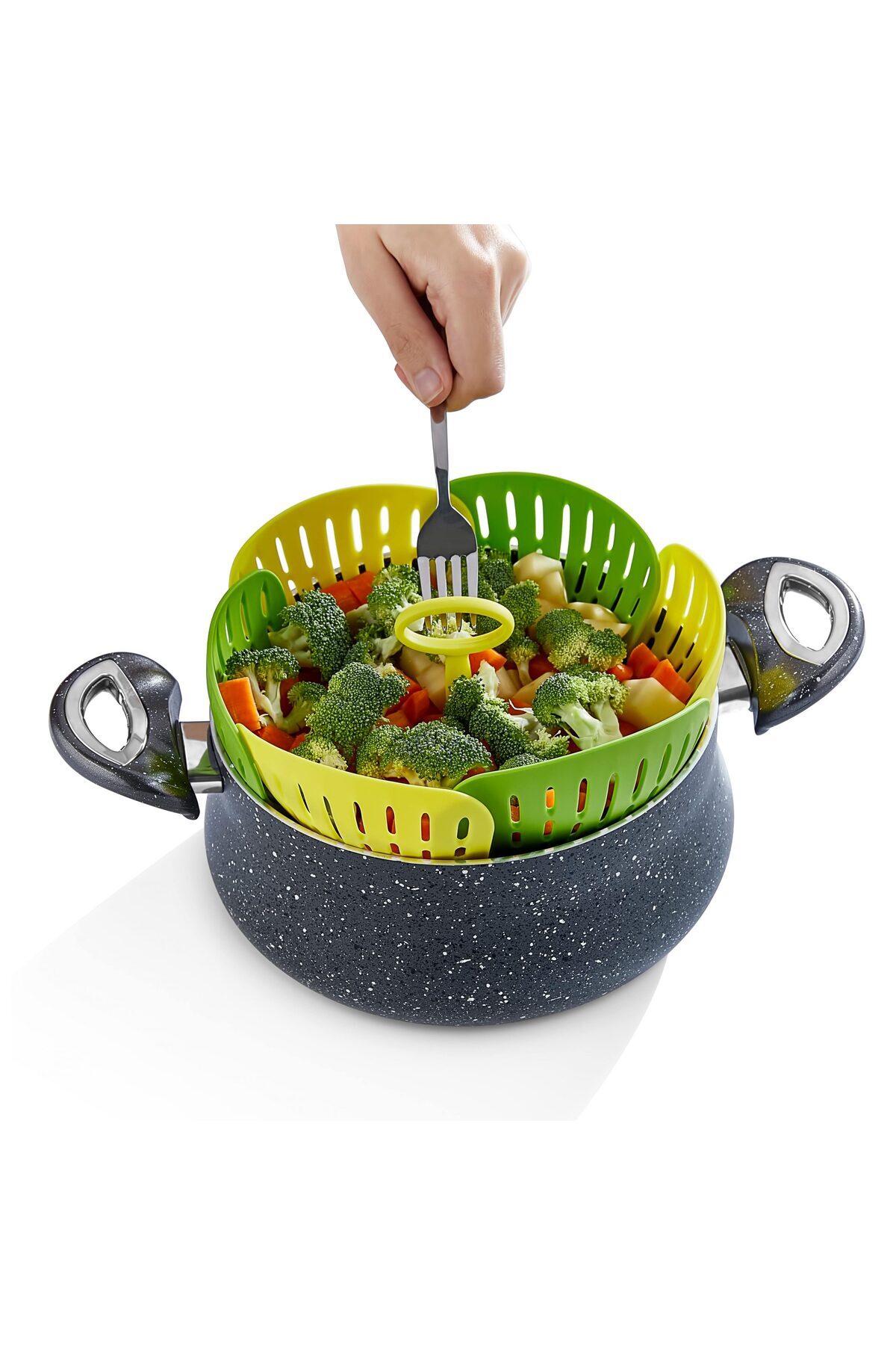 Plastik Katlanır Buharda Pişirme + Hamburger Görünümlü 3 Bölmeli Beslenme Kabı - 2li Set C9F4E5