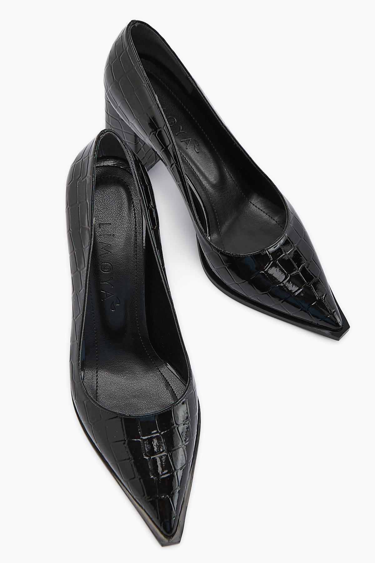 Lucy Siyah Kroko Kalın Topuklu Ayakkabı Kadın Stiletto