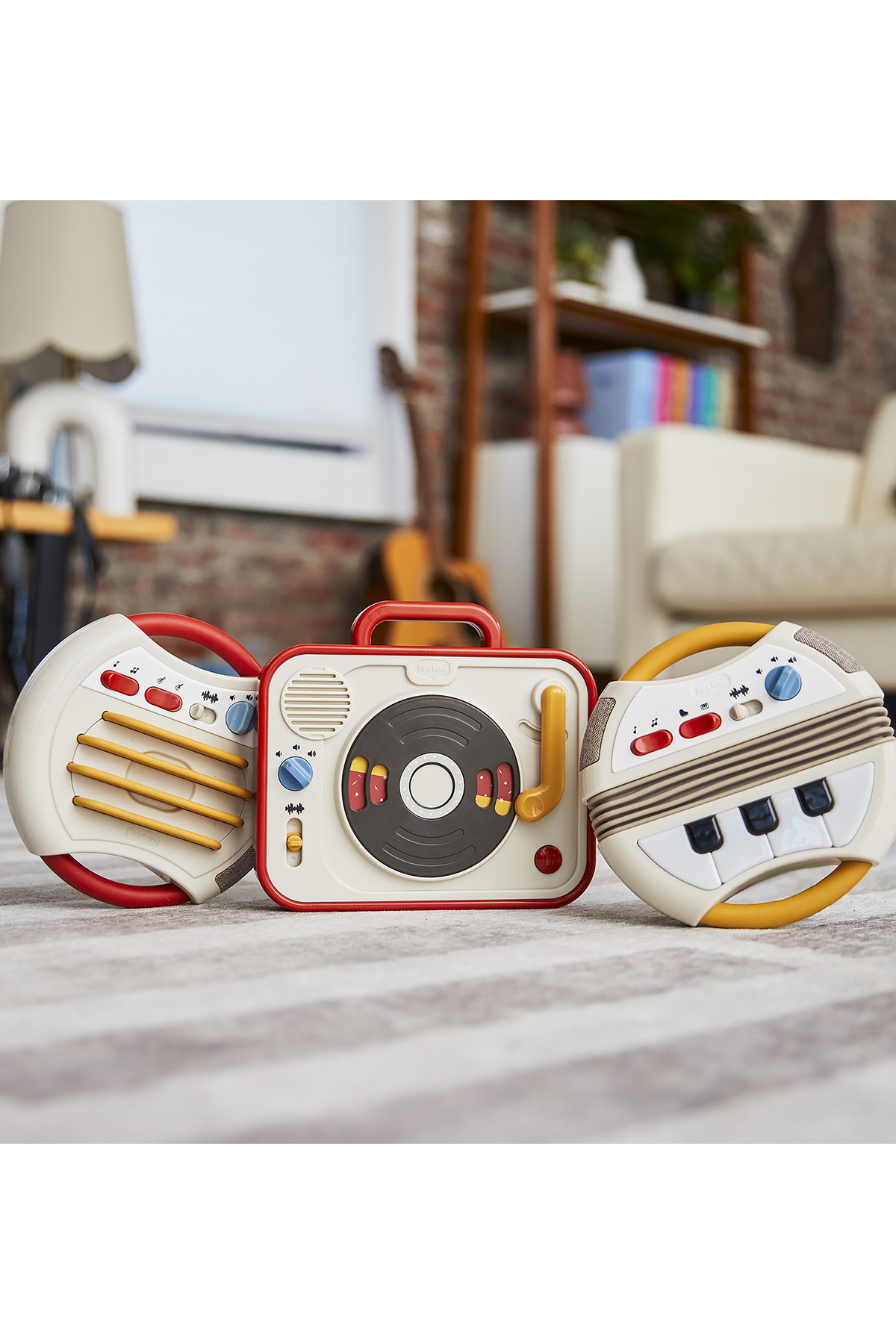 İki kolay tutulan tutma yeri, çocuğunuzun tıpkı gerçek bir akordeon gibi müzik yapmanın keyfini çıkarmasını kolaylaştırır! Bir perde kaydırıcısı ses eğlencesine katkıda bulunur.