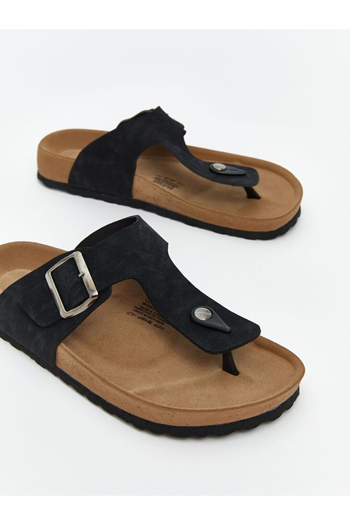 Ürün AçıklamasıParmak arası tasarımlı erkek terlik, üst bandı ayarlanabilir metal tokalıdır ve anatomik tabana sahiptir.