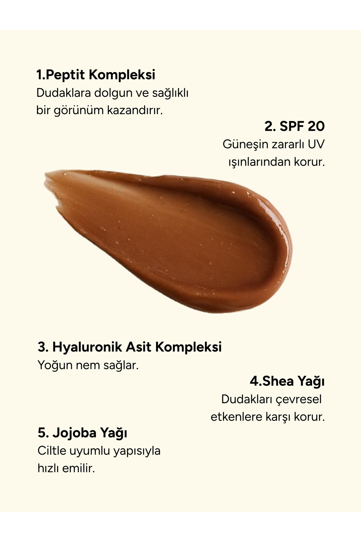 Nemlendirici Parlatıcı Dudak Bakım Lip Balm Mocha Chocolate SPF20 Peptit Hyaluronik Asit Vitamin E