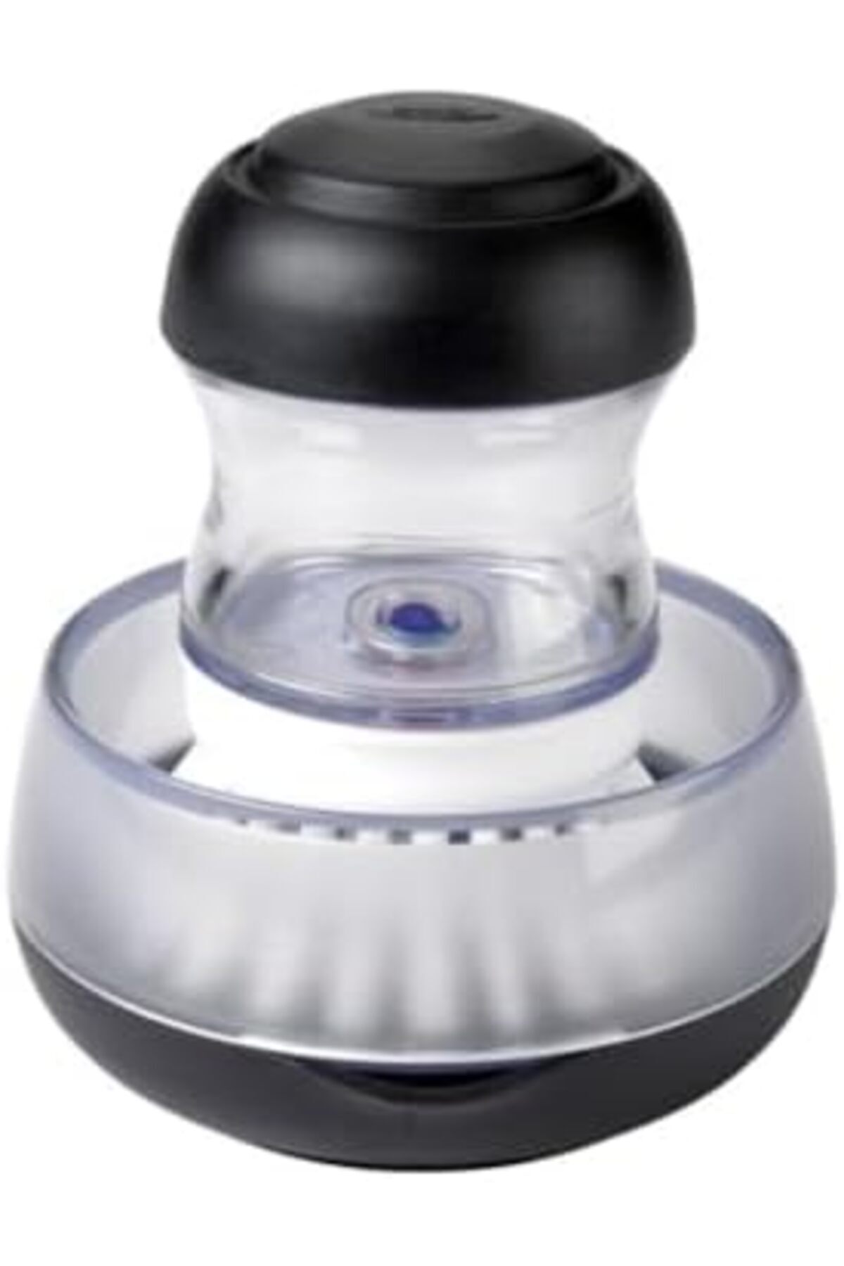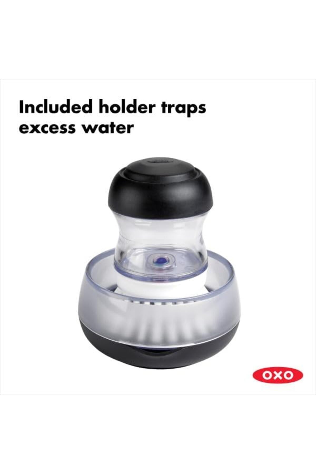 Fırçanın bulaşık deterjanı vermesi için hafif bir düğmeye basmanız yeterlidir Fırçanın dayanıklı kılları vardır, pişmiş kalıntıları fırçalayın ve kaplamalı tencereler için uygundur Tutucu, ağızlı bir damlama kasesine sahiptir Kaymaz yüzey - Good Grips kompakt el süpürgesi ve faraş - Good Grips kompakt el süpürgesi ve faraş