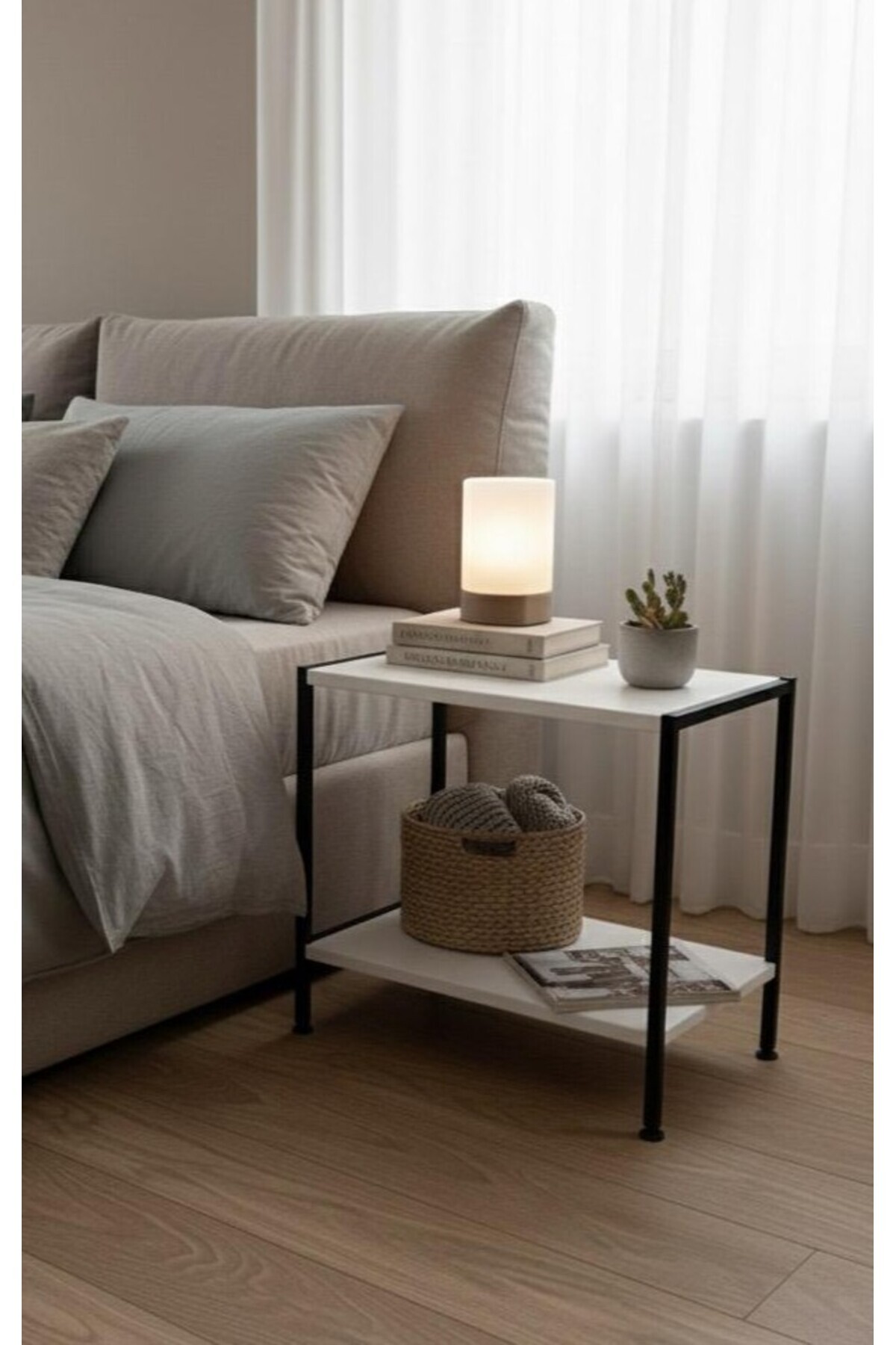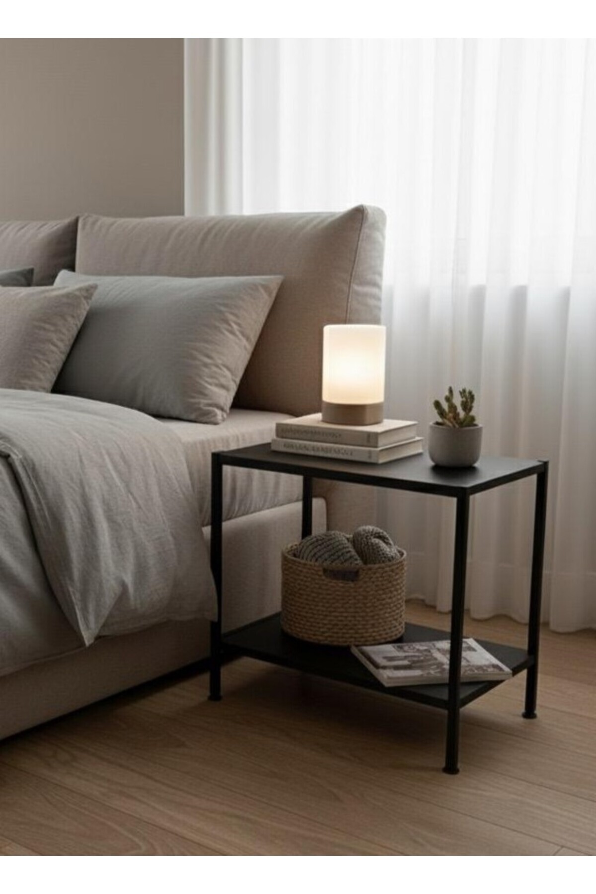 Modern Çift Raflı Komodin – Çok Amaçlı Metal Ayaklı Yan Sehpa