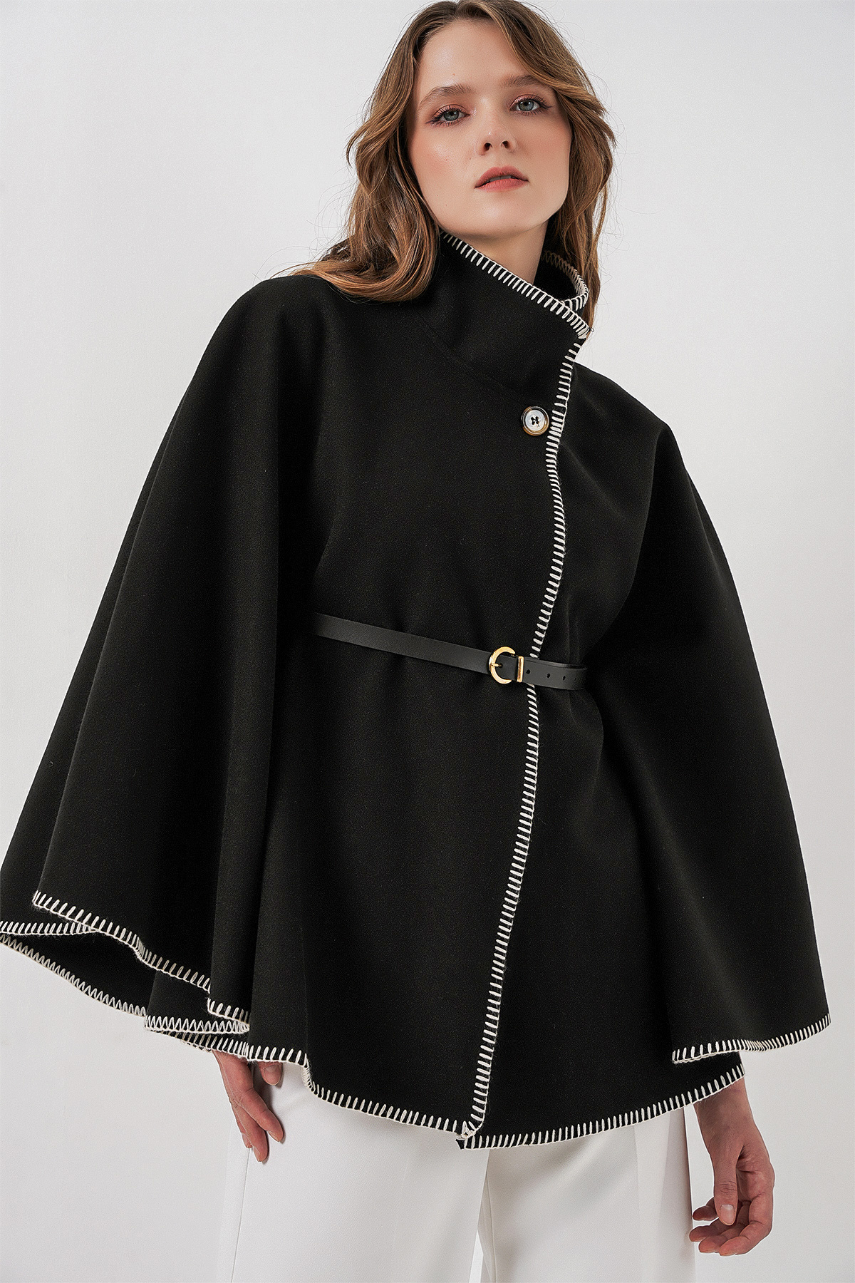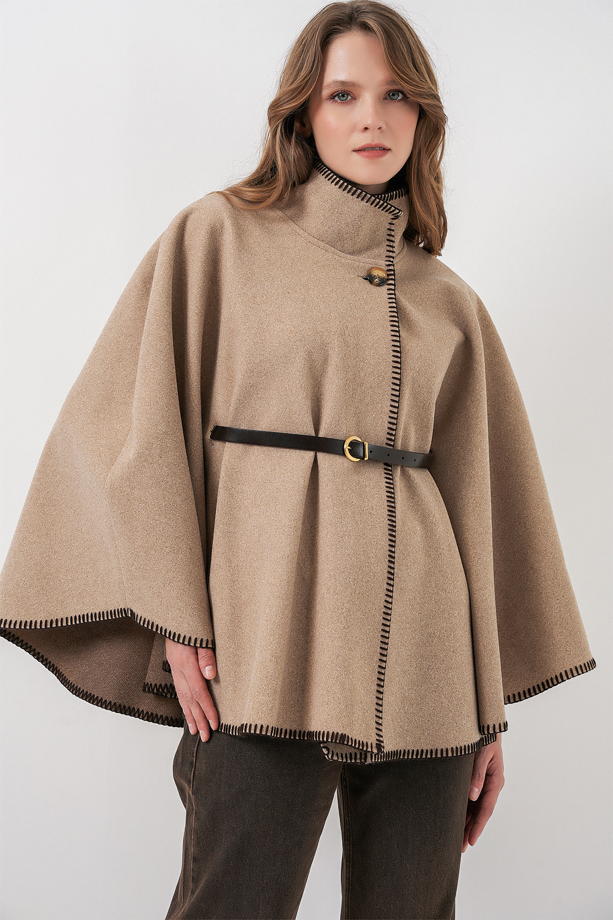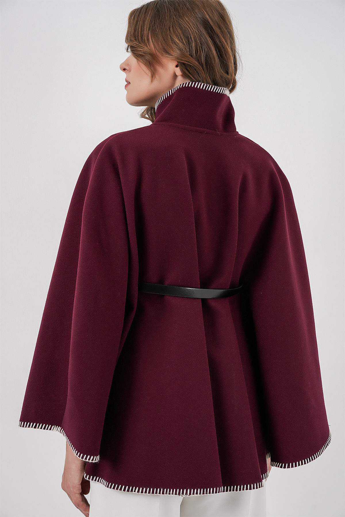 Kadın Dikiş Detaylı Kaşe Panço 9166 - Bordo