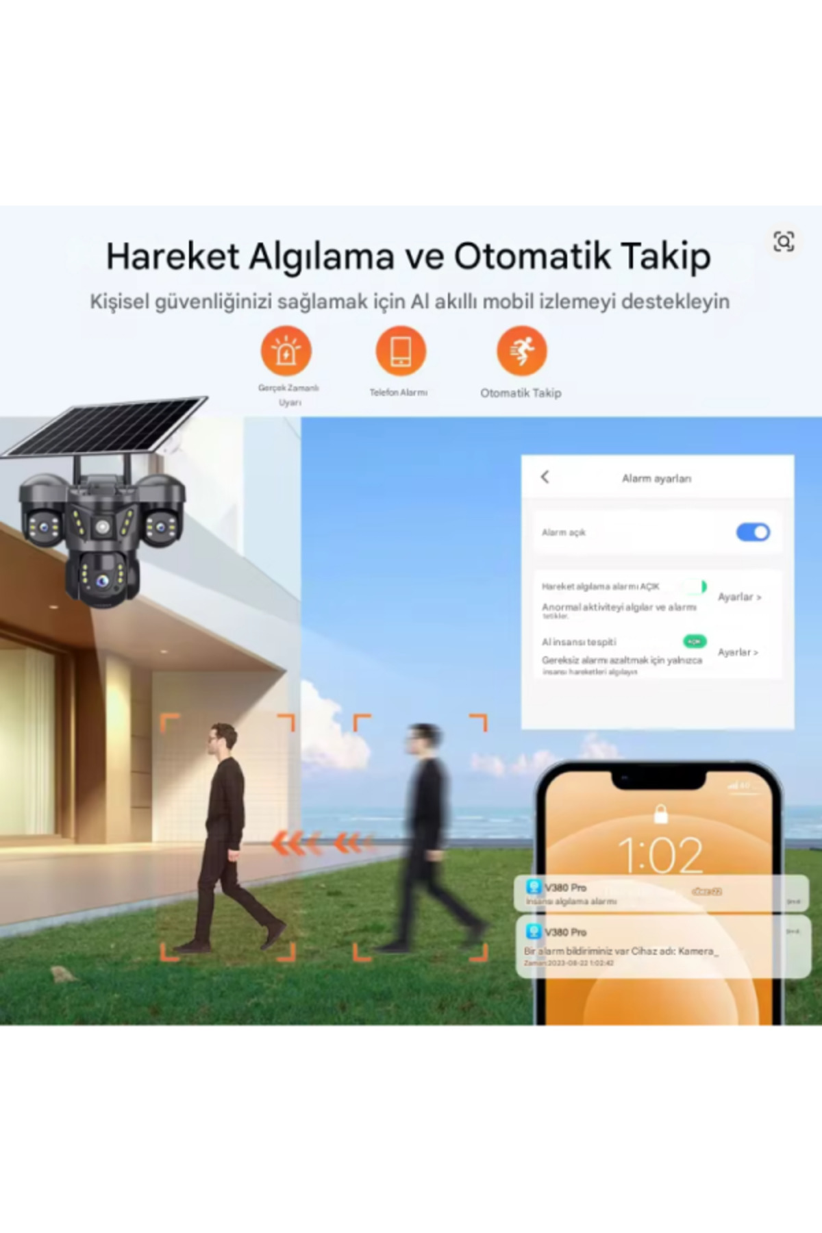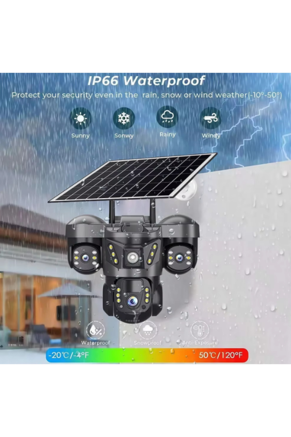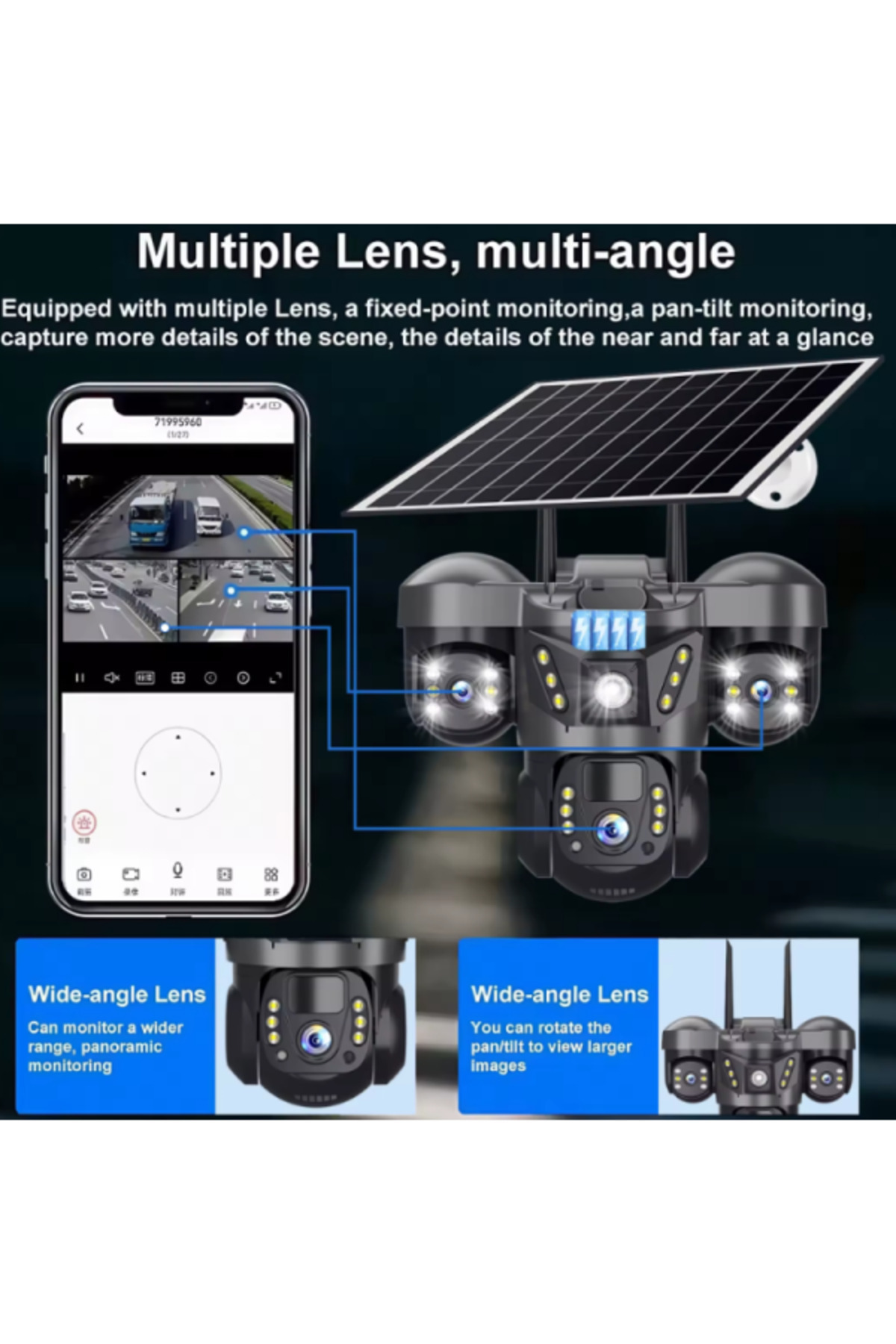 SNR-1 3 Lens Solar Güvenlik Kamerası 4G Sim Kartlı PTZ Hareketli Gece Görüşlü Güneş Panelli Kamera