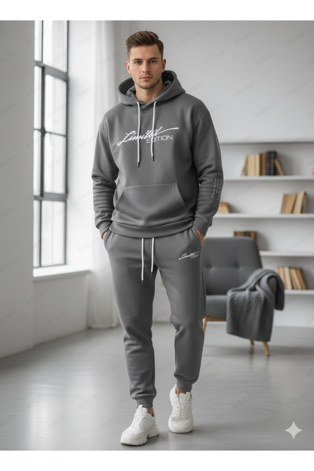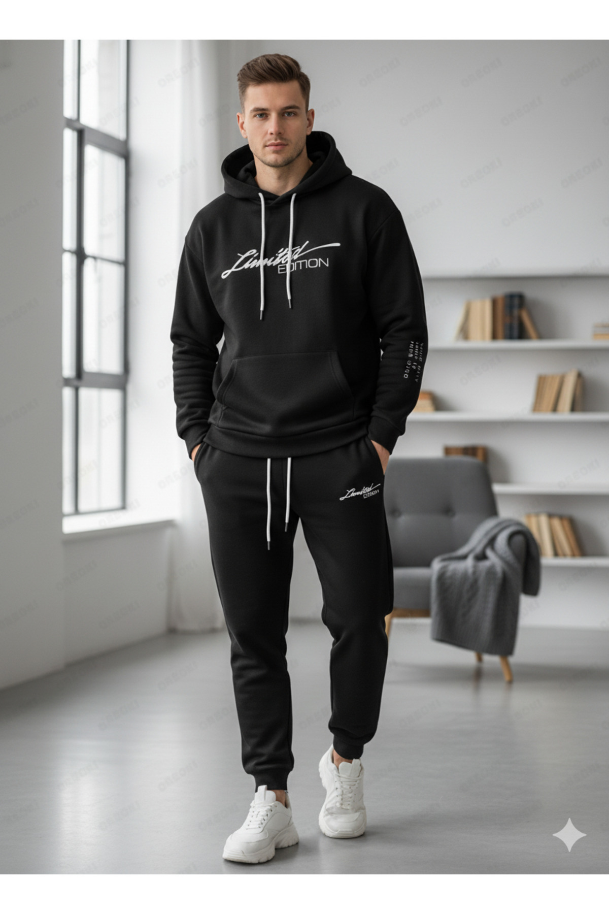 Erkek Kapüşonlu Kışlık "Limited" Baskılı Eşofman Takımı-Alt Üst Takım