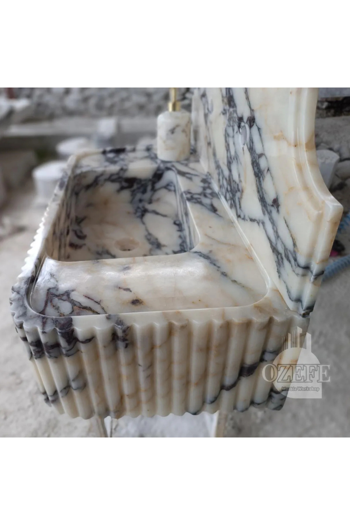 Calacatta Viola Fırfırlı Kenar Tasarımlı Lüks Mermer Lavabo
