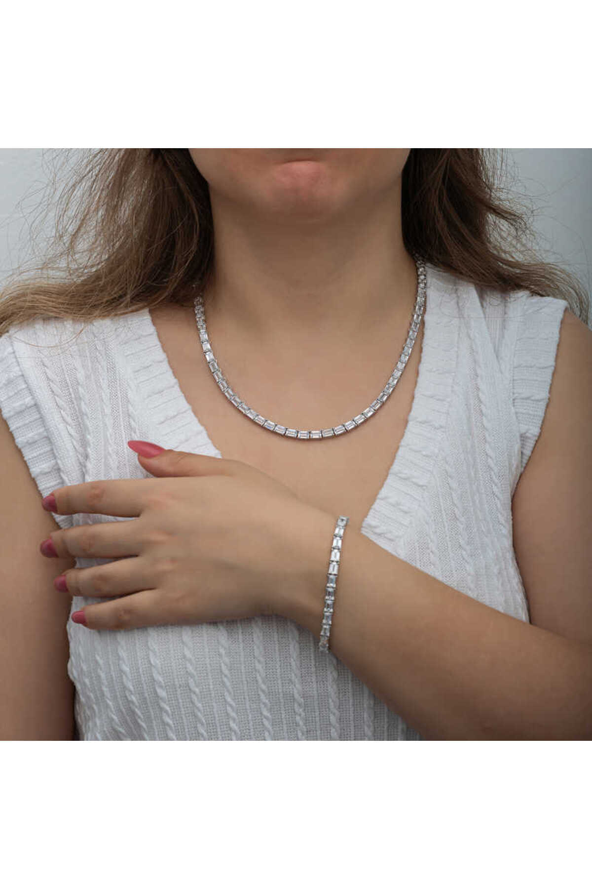 Gümüş Beyaz Taşlı Su Yolu Kadın Set