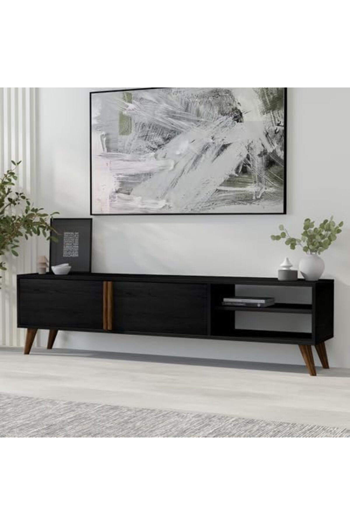 Benoit Dolaplı Raflı Tv Sehpası Oturma Odası Tv Ünitesi tv sehpası tv ünitesi dolaplı tv sehpası Dolaplı, Raflı Tv Sehpası, Oturma Odası Tv Ünitesi, Ahşap Siyah