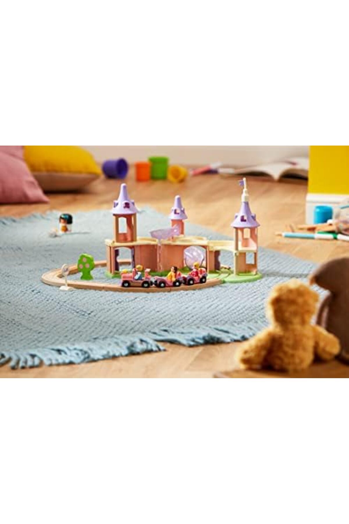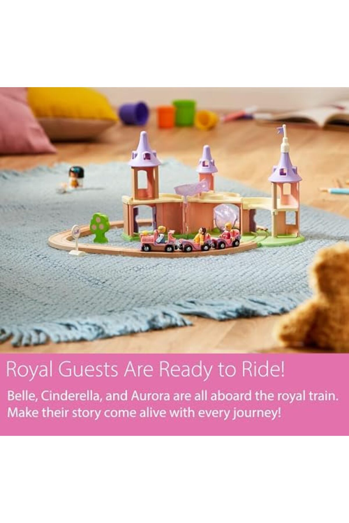 Şato Seti ile masalsı bir dünyada Prenses, Belle ve Sindirella'ya katılın muhteşem bir prenses, ahşap tren rayları, prenses treni, üç prenses karakteri ve aksesuarları bulunur Üç prenses arkadaşın her biri, Prenses Sindirella, Prenses Belle ve Uyuyan Güzel Prenses, parıltılı dokunuşlarla ışıldayan klasik elbiselerini giyinmişlerdir WD Şato Seti, Oyuncak WD Şato Seti, Oyuncak