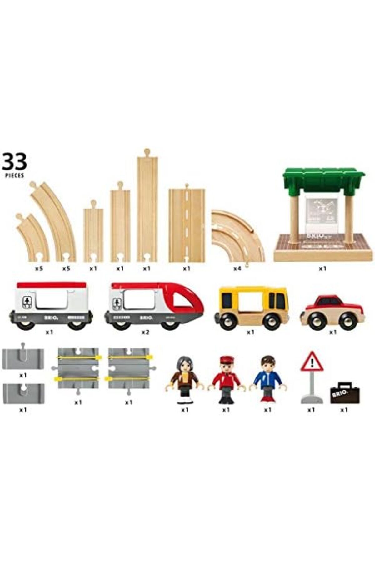 Gerçek yaşam oyun imkanı sunar Çocukların hayal dünyasını ve motor becerilerini geliştirir İki farklı ulaşım sistemini bir araya getirir 33209 Rail and Road Travel Set 33209 Rail and Road Trl Set