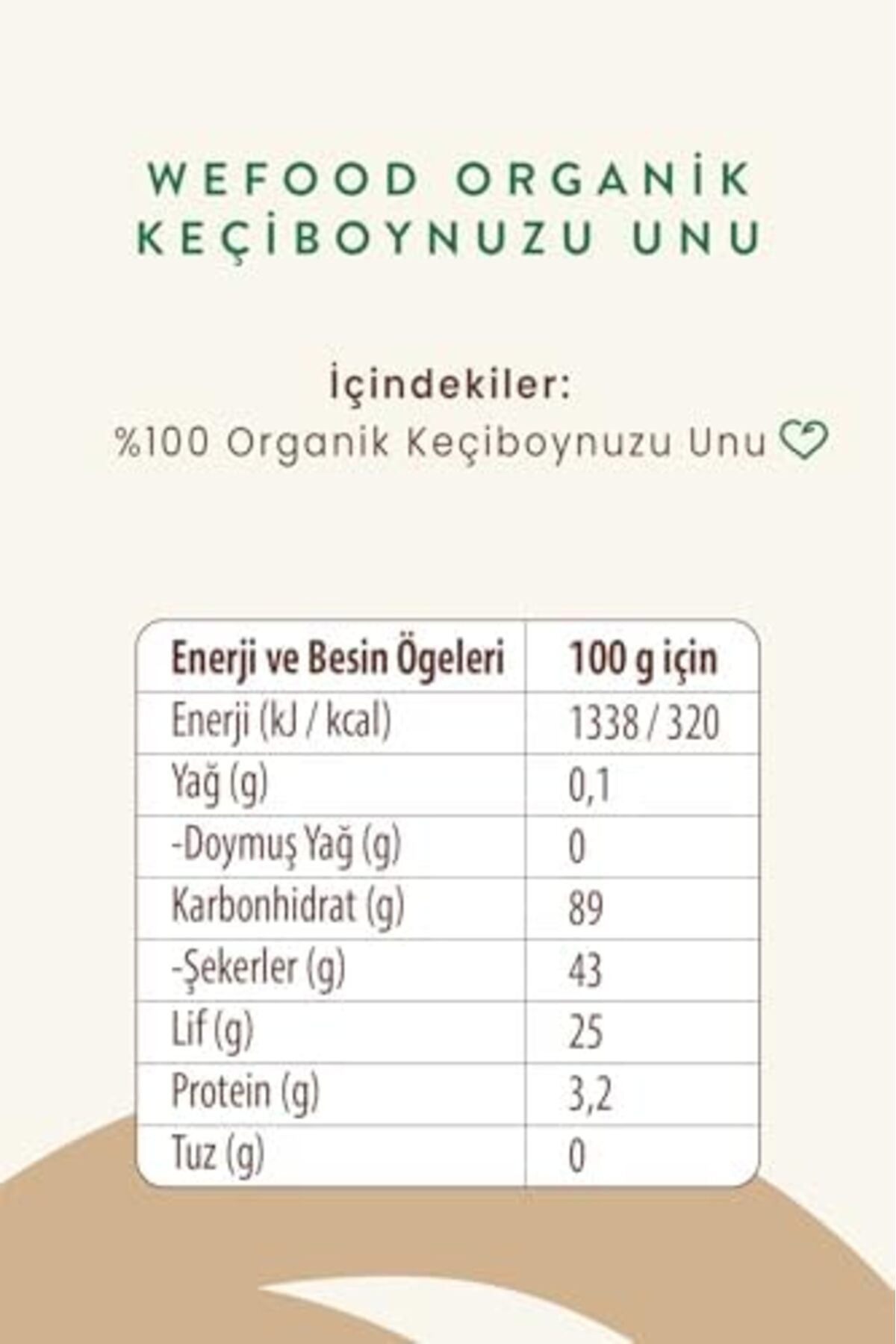 Organik üretim Keçiboynuzu bazlı 250g paket Wefood Organik Keçiboynuzu Unu 320 gr Wefood Organik Keçiboynuzu Unu 320 gr