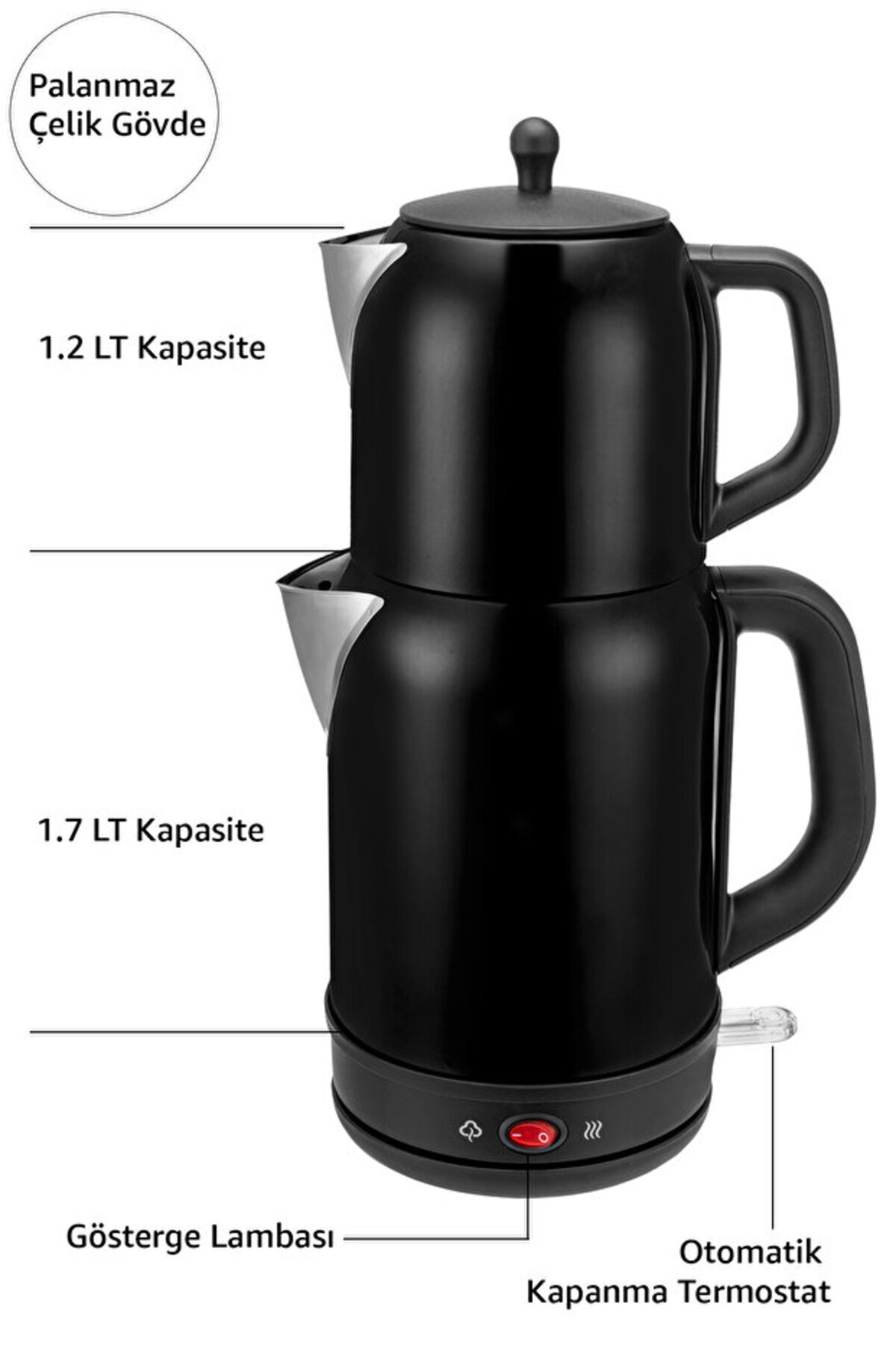 Sarıboğa Fresco 2'si 1 Arada Paslanmaz Çelik Çay Makinesi & Su Isıtıcı KettleÜrün Açıklaması- Modern tasarımıyla mutfaklarınıza şıklık katan Fresco 2'si 1 arada paslanmaz çelik çay makinesi, su ısıtıcısı olarak da kullanılabilir.