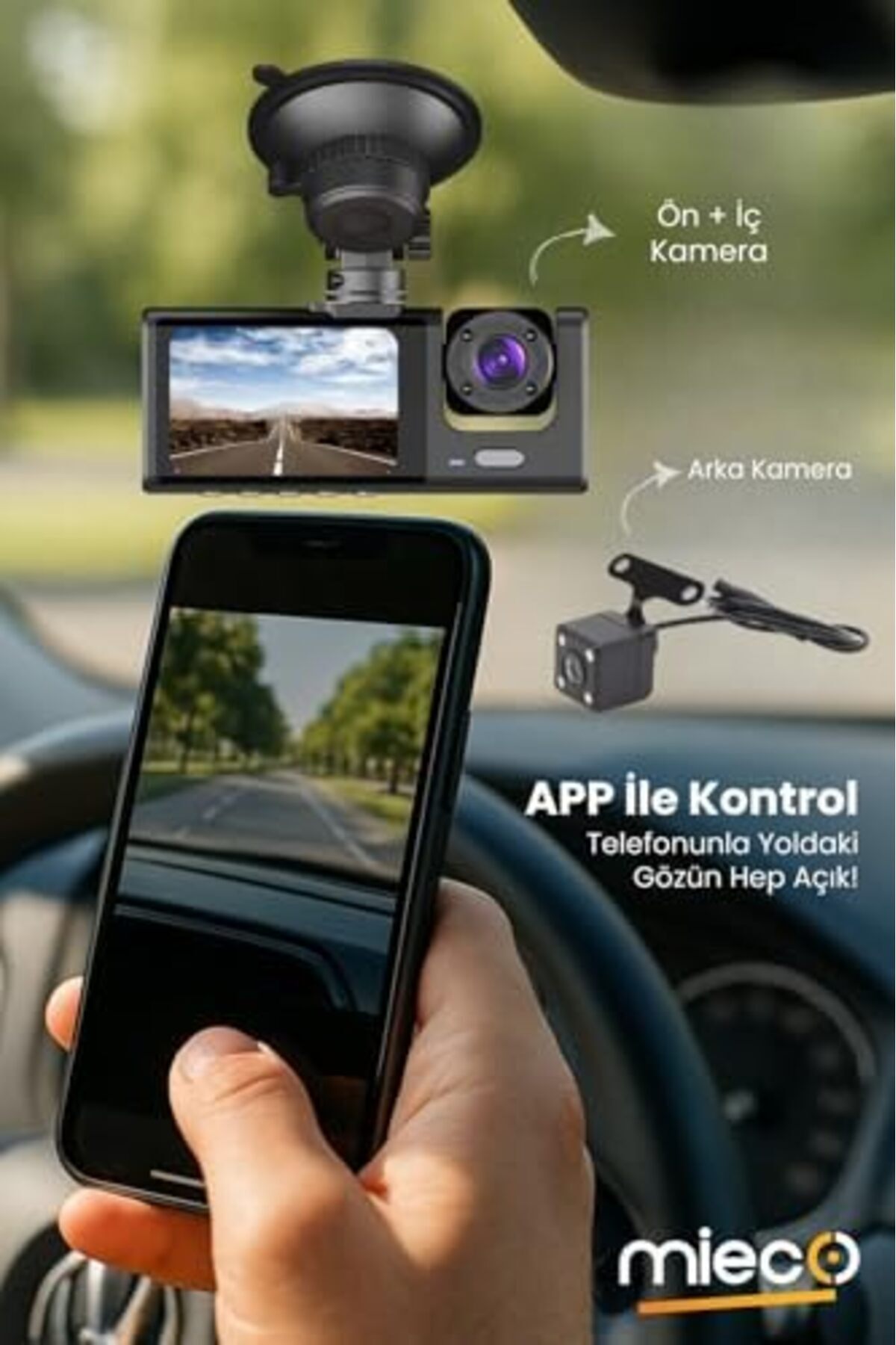 ARAÇ İÇİ KAMERA 1s Wifi/1920p Fhd/170° Ultra Geniş Açı/gece Görüşü Ve G-sensörü/ 3 Kameralı Araç Kamerası (2025)