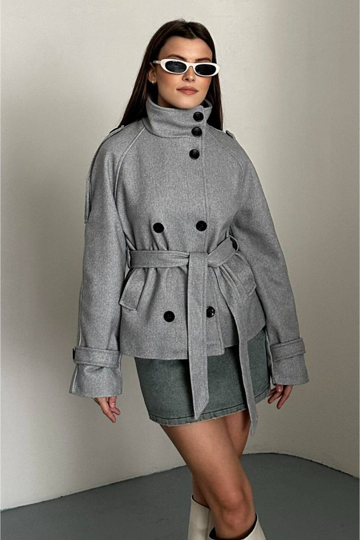 - Kemerli tasarımı belinizi vurgulayarak feminen bir siluet oluşturur.