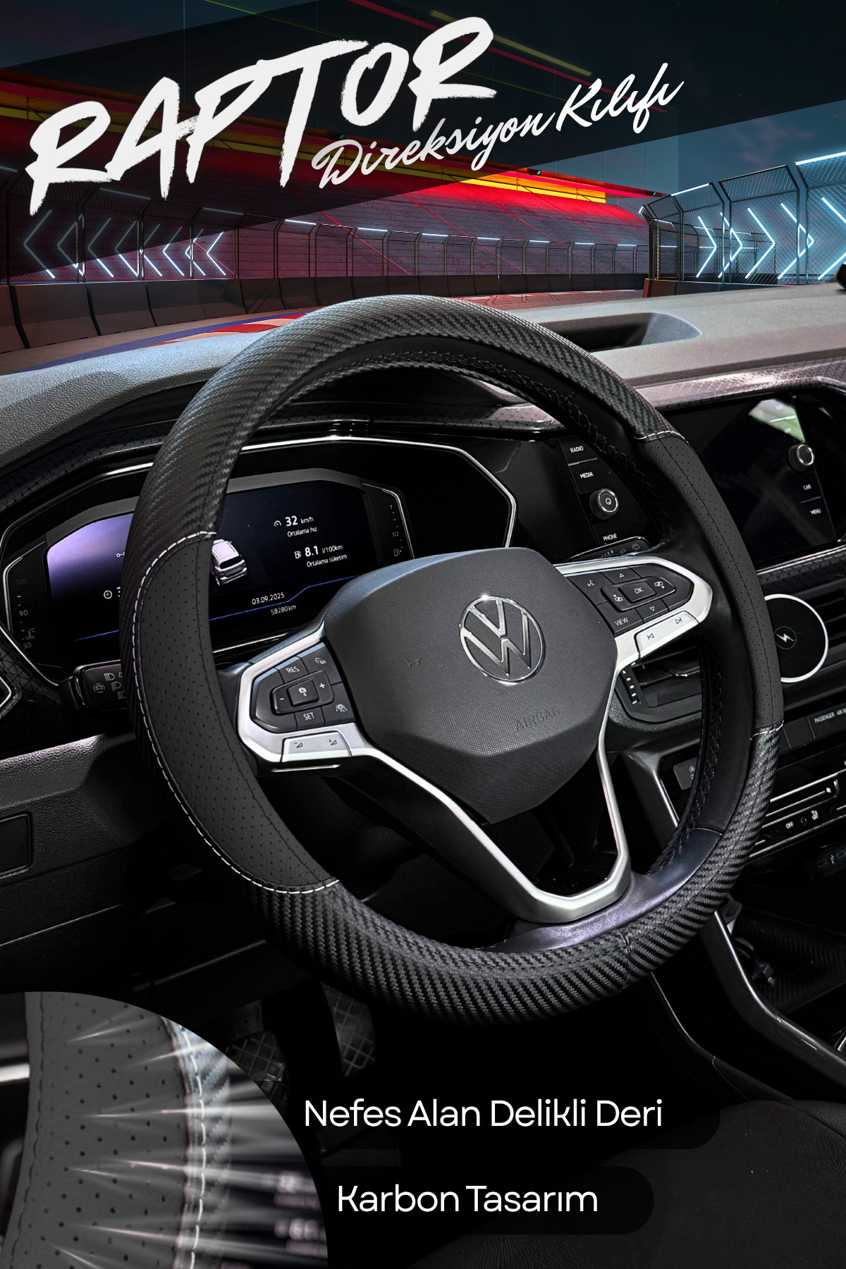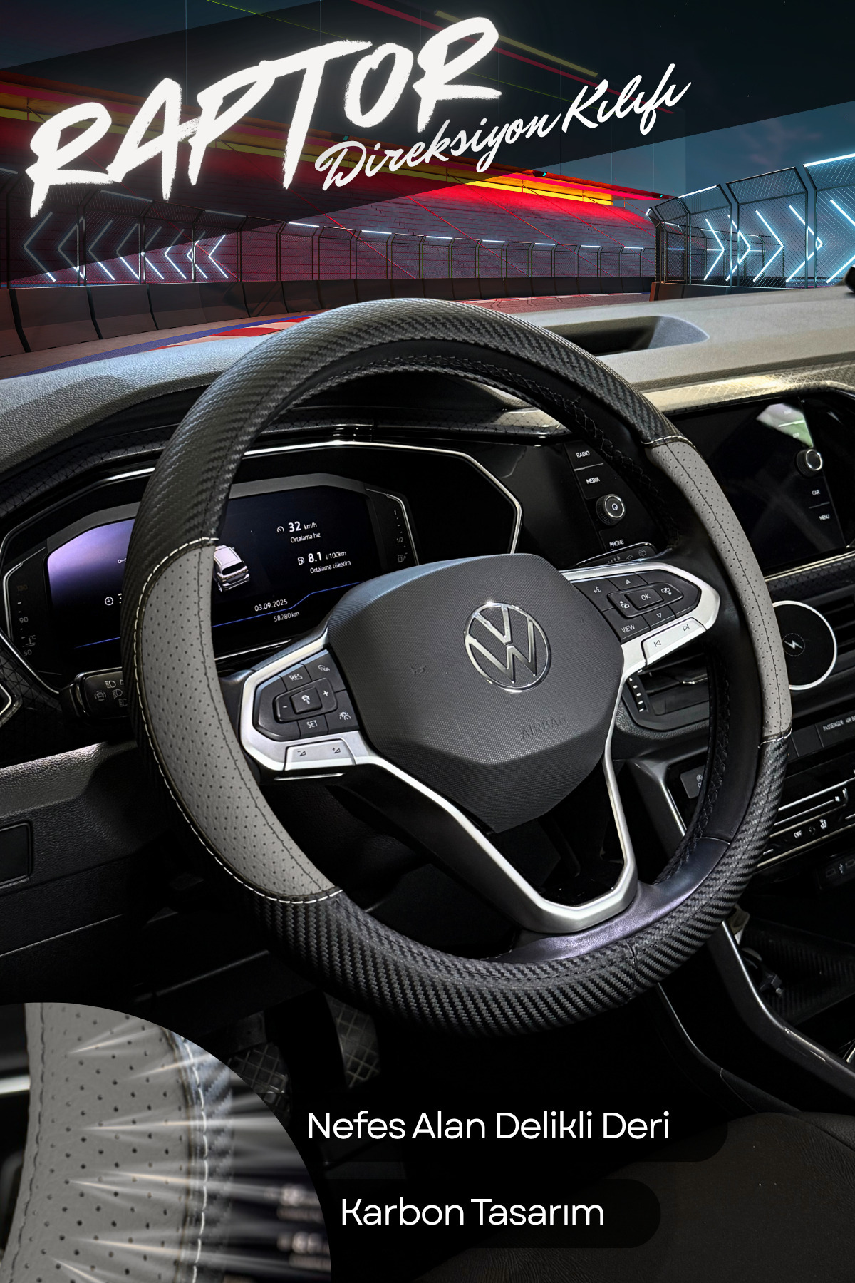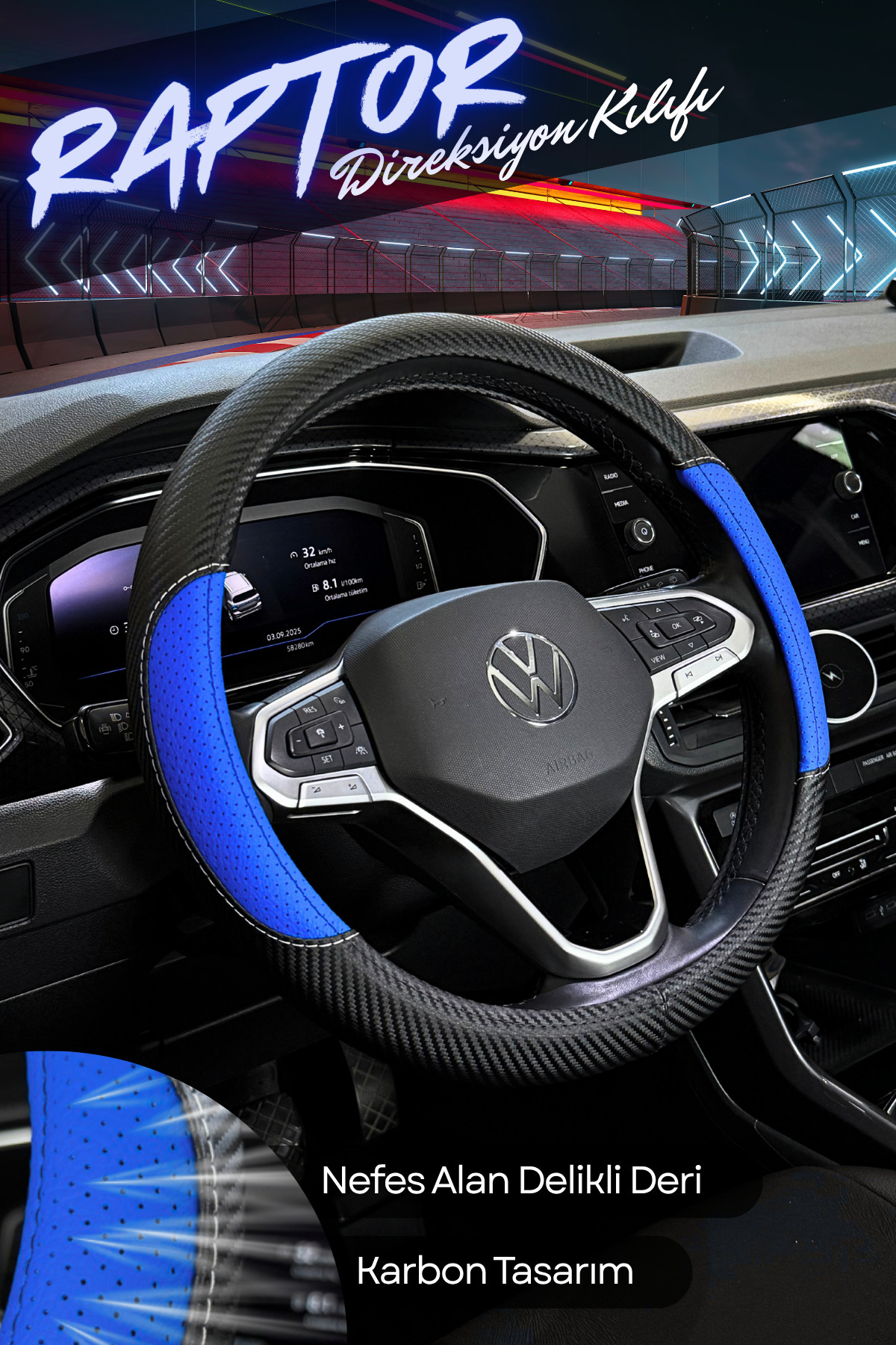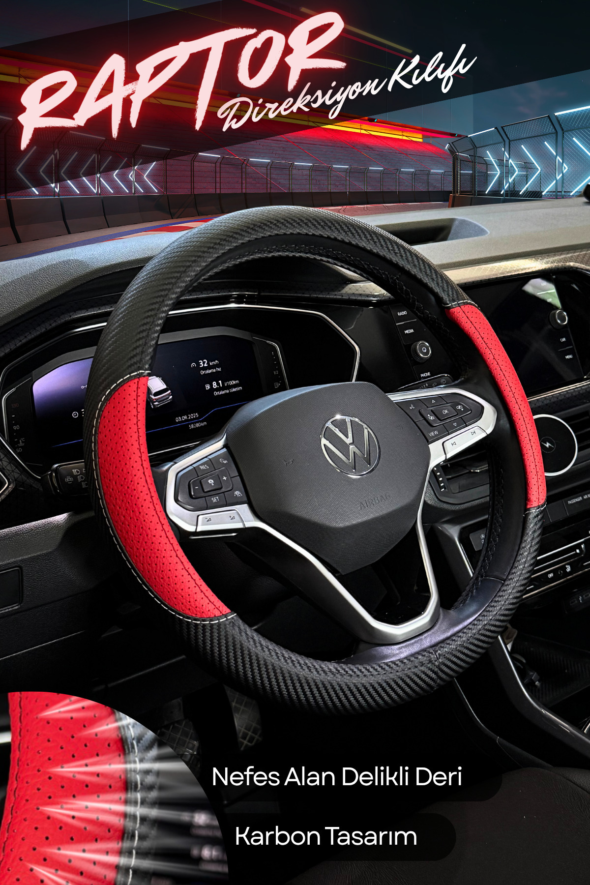 Raptor Serisi Delikili Deri Geçmeli Direksiyon Kılıfı Tüm Araçlara Uyumlu Araç Aksesuar