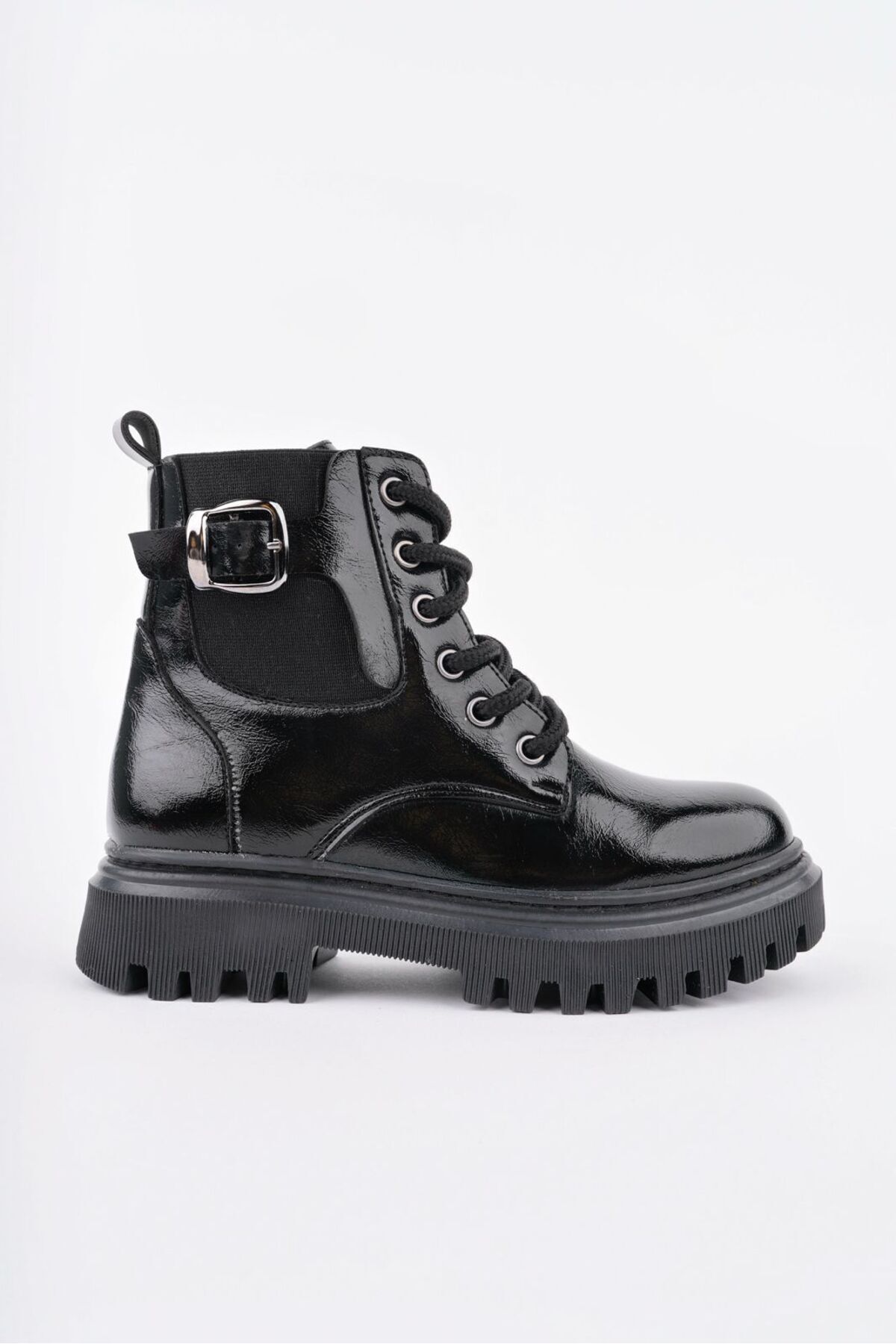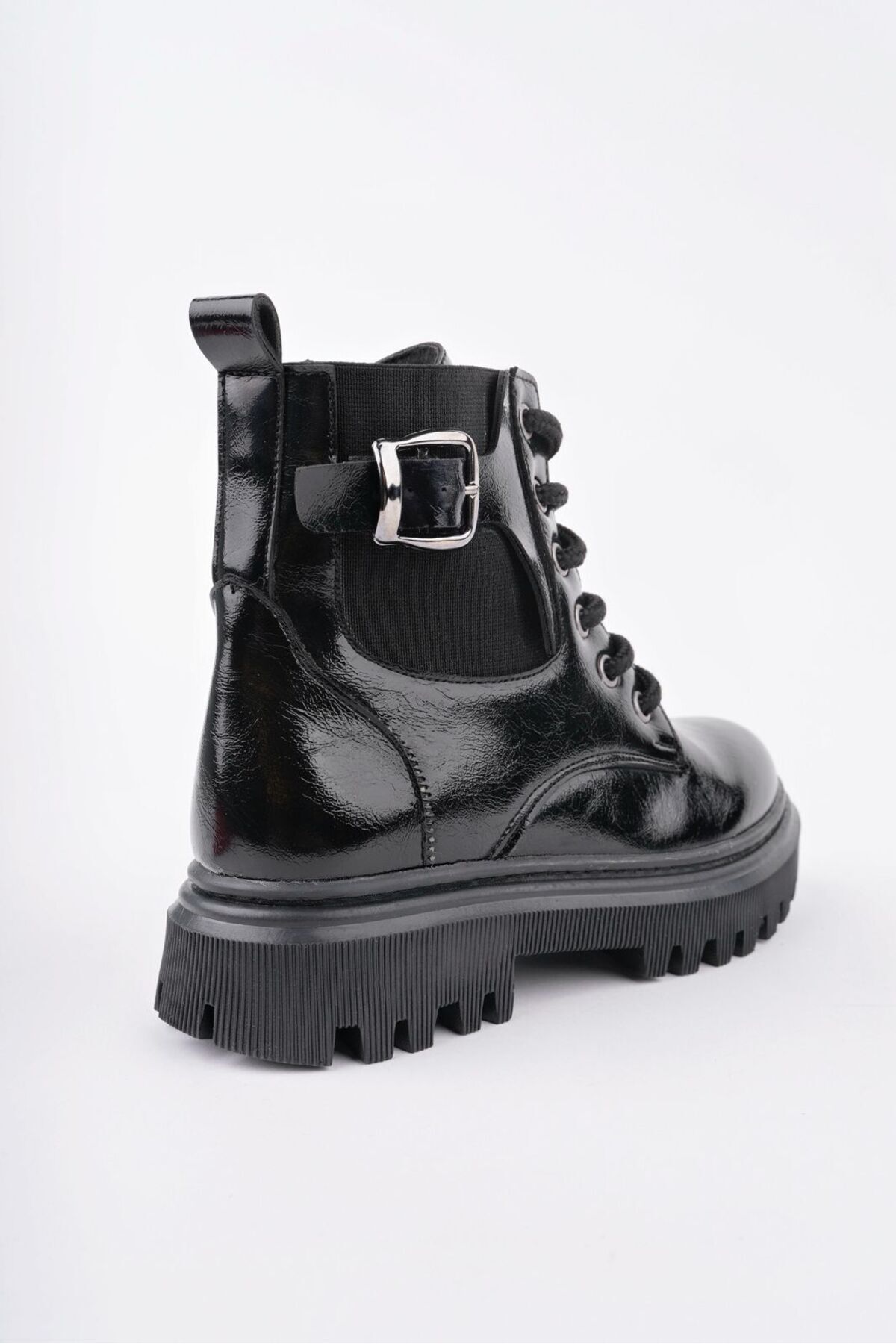 Siyah kırışık rugan bot içi kalın astar vardır taban dikili ve şu geçirmez.