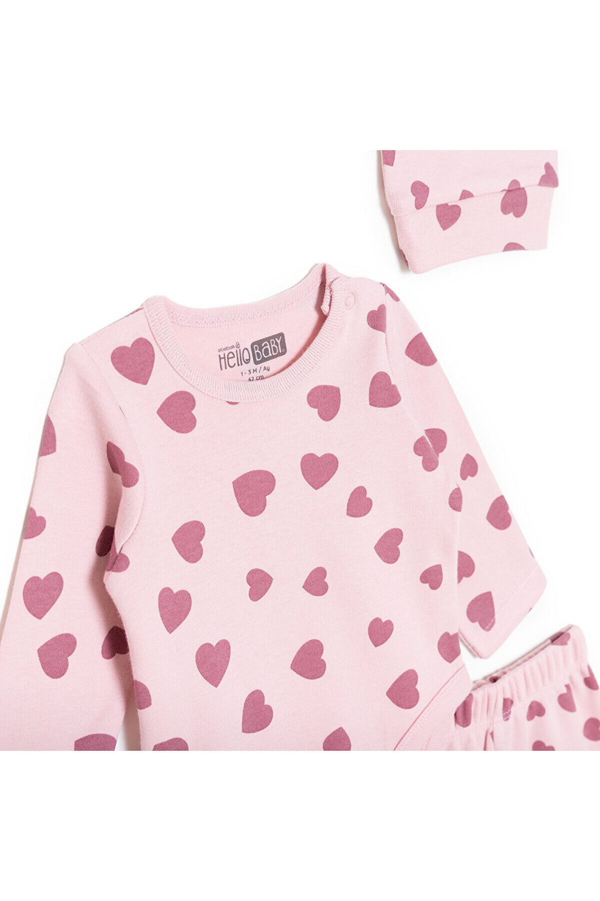 HelloBaby Yenidoğan Kız Bebek Kalp Desenli Body-Patikli Alt-Şapka HelloBaby Yenidoğan Body-Patikli Alt-Şapka takımı, yenidoğan bebeklerin hassas ciltlerine özel olarak tasarlanmıştır.