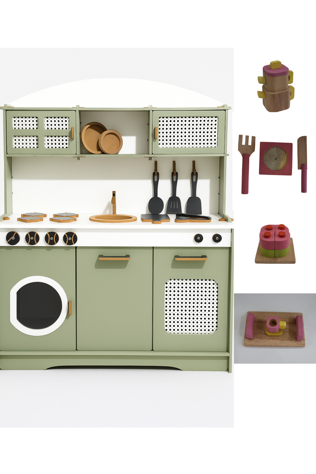 - 2 yaş ve üzeri çocukların güvenle kullanabileceği Ihlamur Siyah Aksesuarlı Çocuk Ahşap Mutfak Seti, minik şeflerin hayal gücünü geliştirmesi için idealdir.