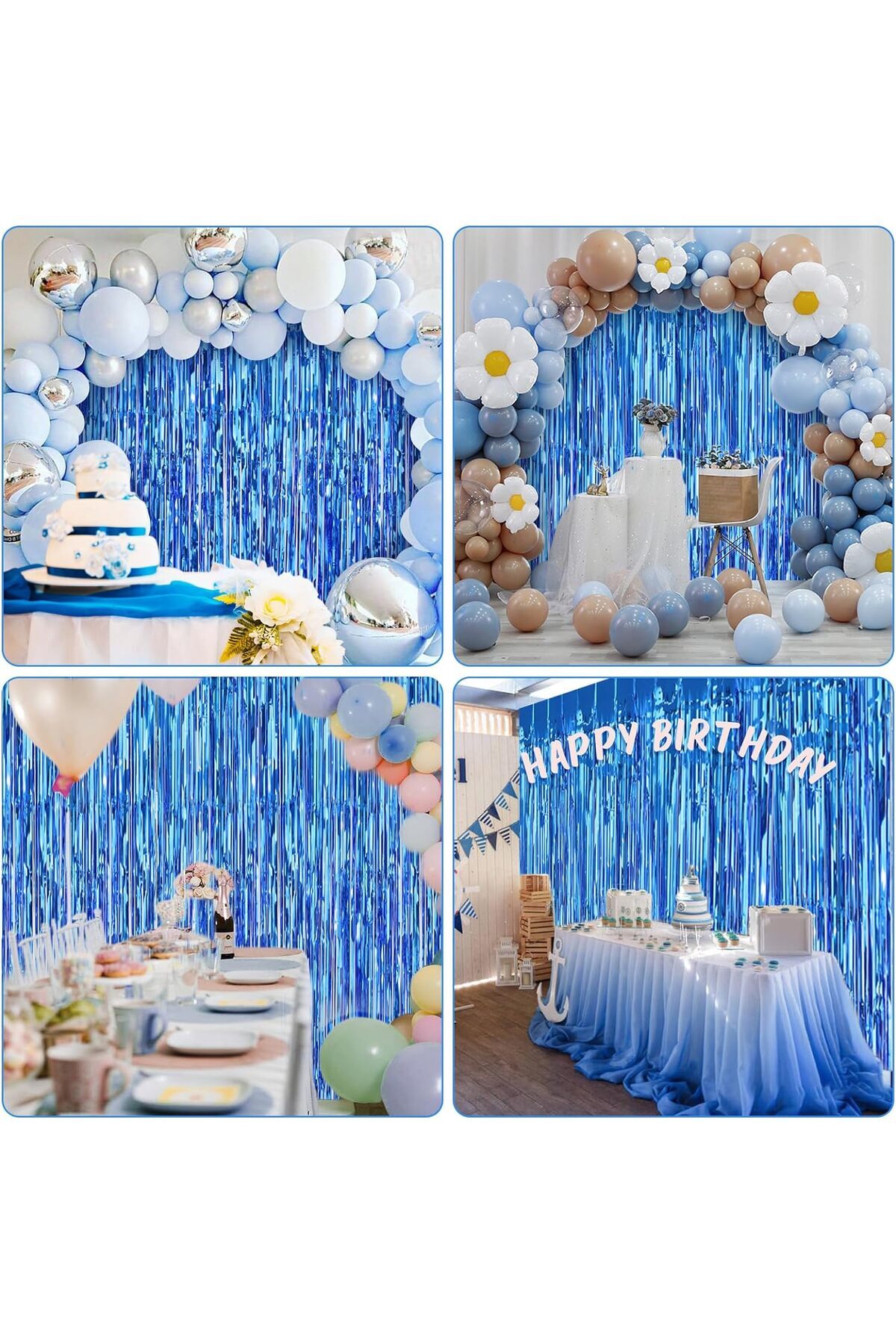 Mavi Renk Ekstra Metalize Parlak Saçaklı Arka Fon Perde: Işıltılı Bir Atmosfer Oluşt Mavi renk ekstra metalize parlak saçaklı arka fon perdesi ile özel günlerinize ve kutlamalarınıza göz kamaştırıcı bir ışıltı katın! İthal A kalite malzemeden üretilen bu perde, 1x2 metre boyutuyla her türlü dekorasyona uyum sağlar.